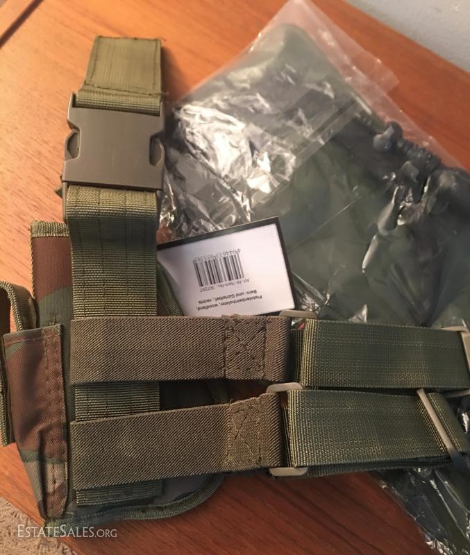 Brand new drop leg holster, fits most large frame semi auto and revolvers. I have tried it with a Colt 1911 and a Ruger Security Six and both worked well in the holster. Military Spec Cordura Nylon, Velcro closures, large belt loop. Will ship anywhere in the US for $6.95