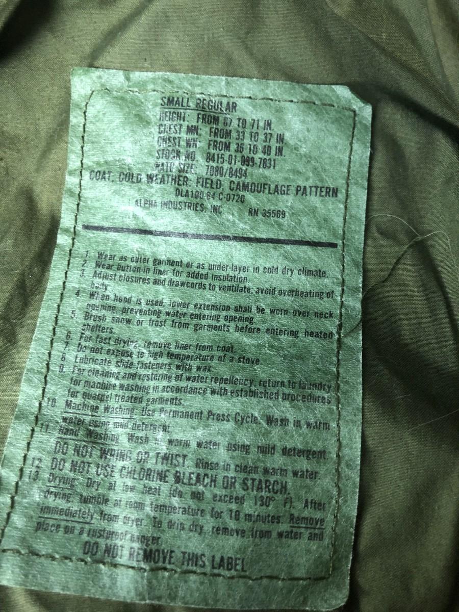 Cold Weather Field Coat Camoflage Pattern Sm-Reg