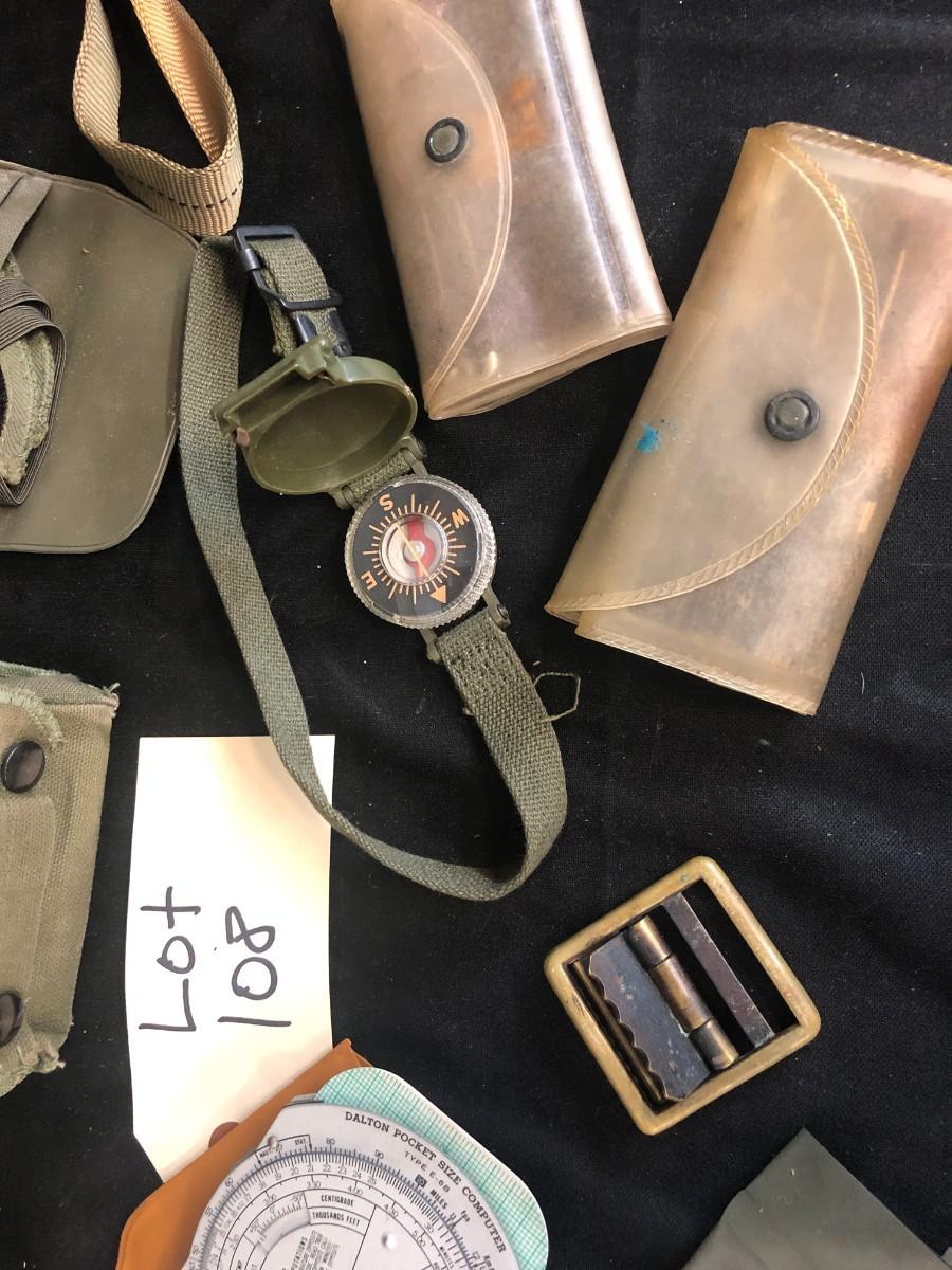 Mixed Lot of Military Items- Compass Sewing Calculator Goggles et