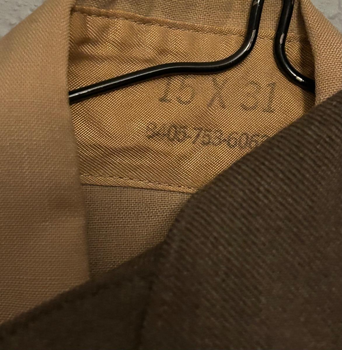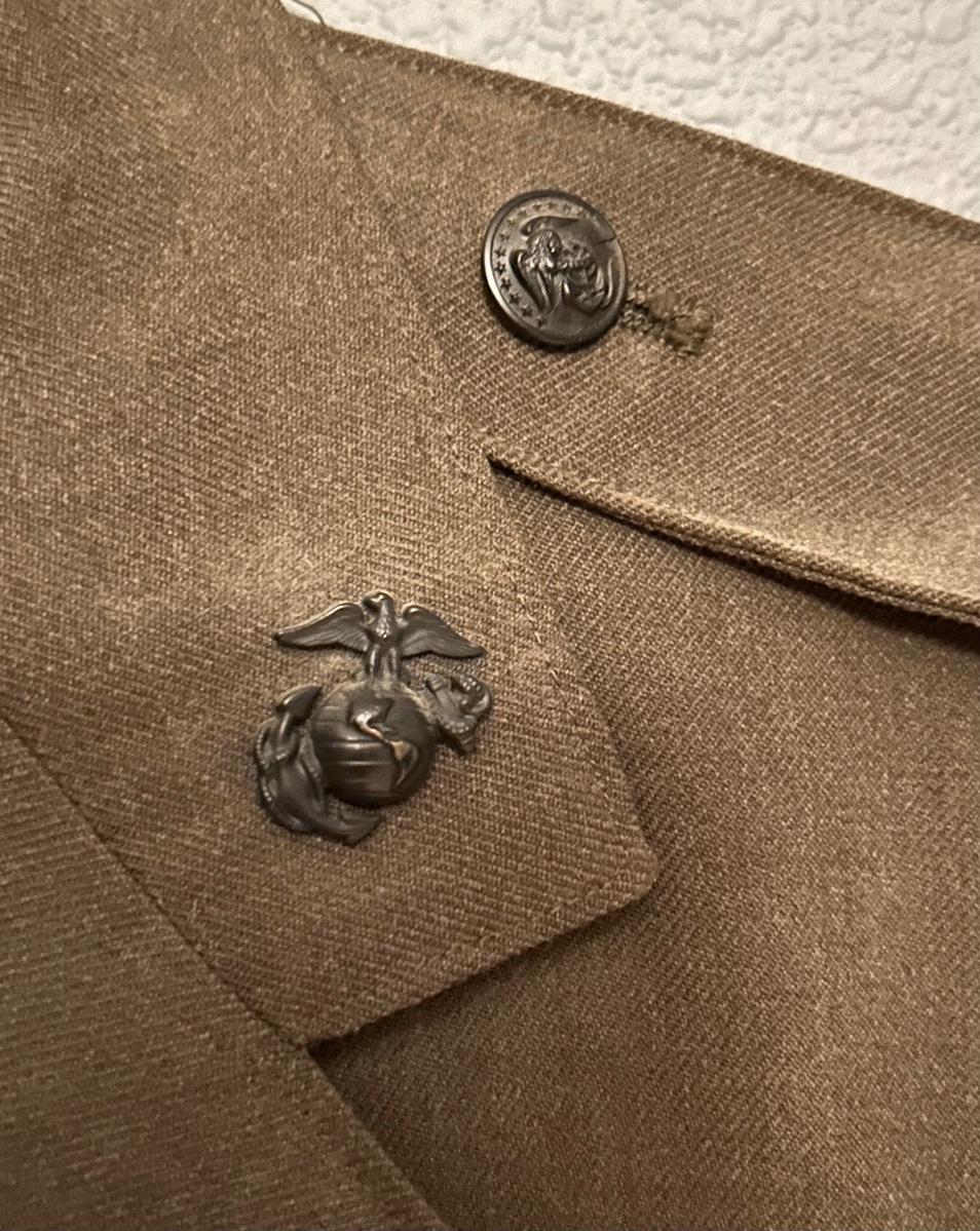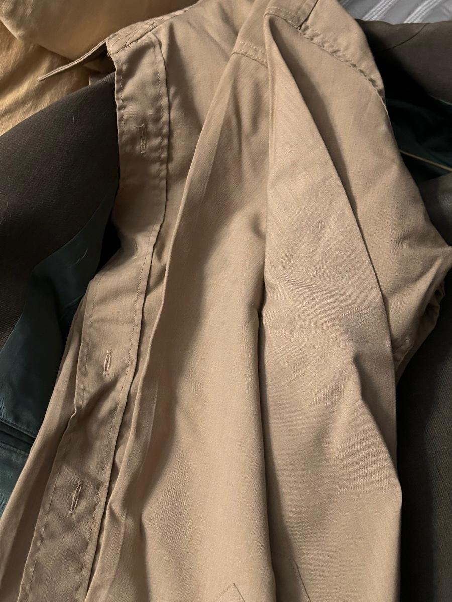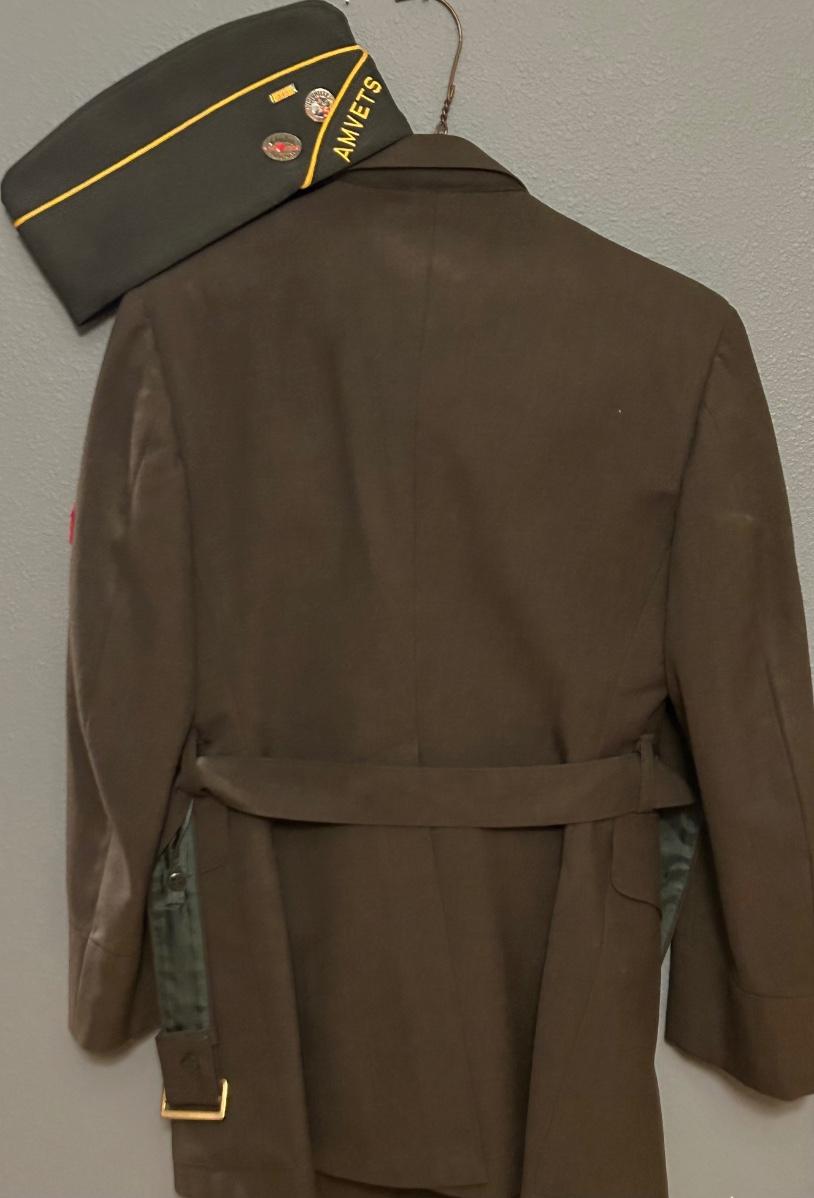 This is so great, quite heavy too. The spare shirt doesn’t have patches. The pants are in good shape except for a tiny hole (I pictured). Didn’t look to be missing any buttons. Comes in garment bag. *he is a Purple Heart recipient*
