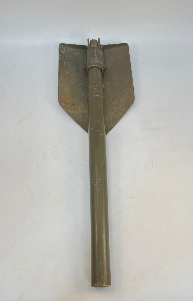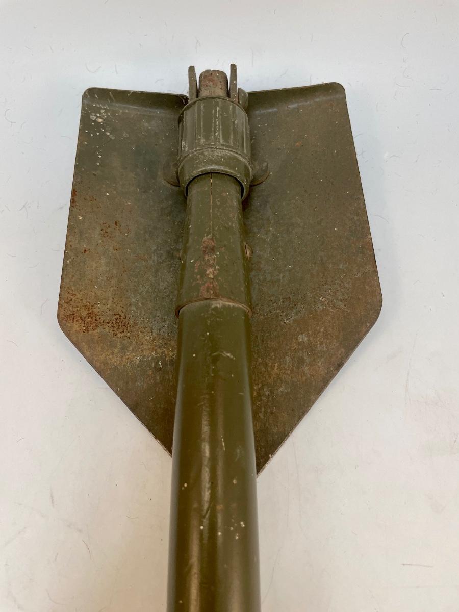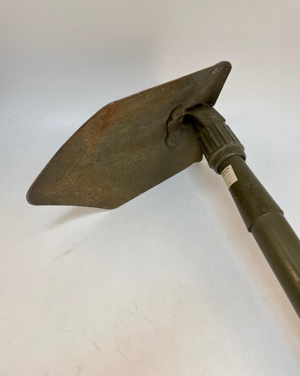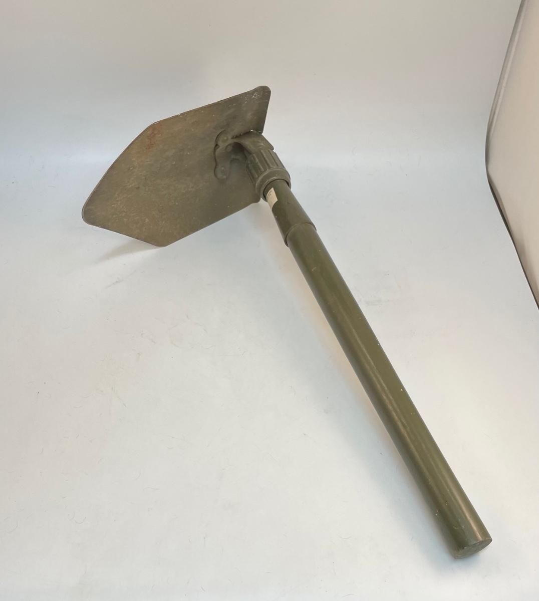 Military/style folding shovel. Solid wood handle. Shovel Head can be locked in different positions for digging or chopping.