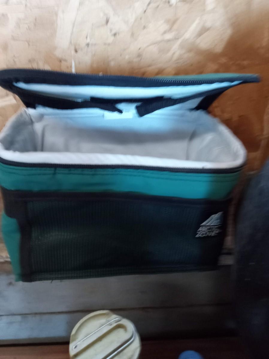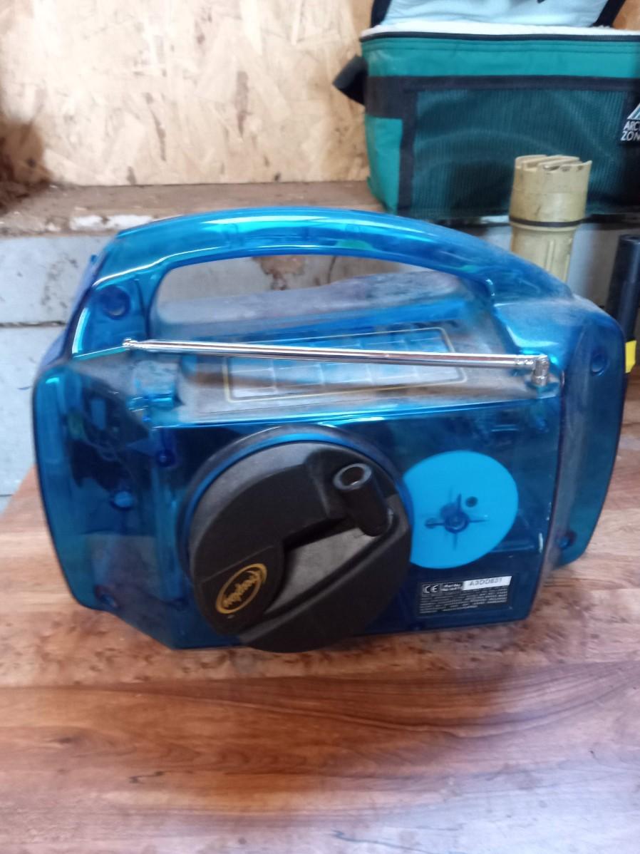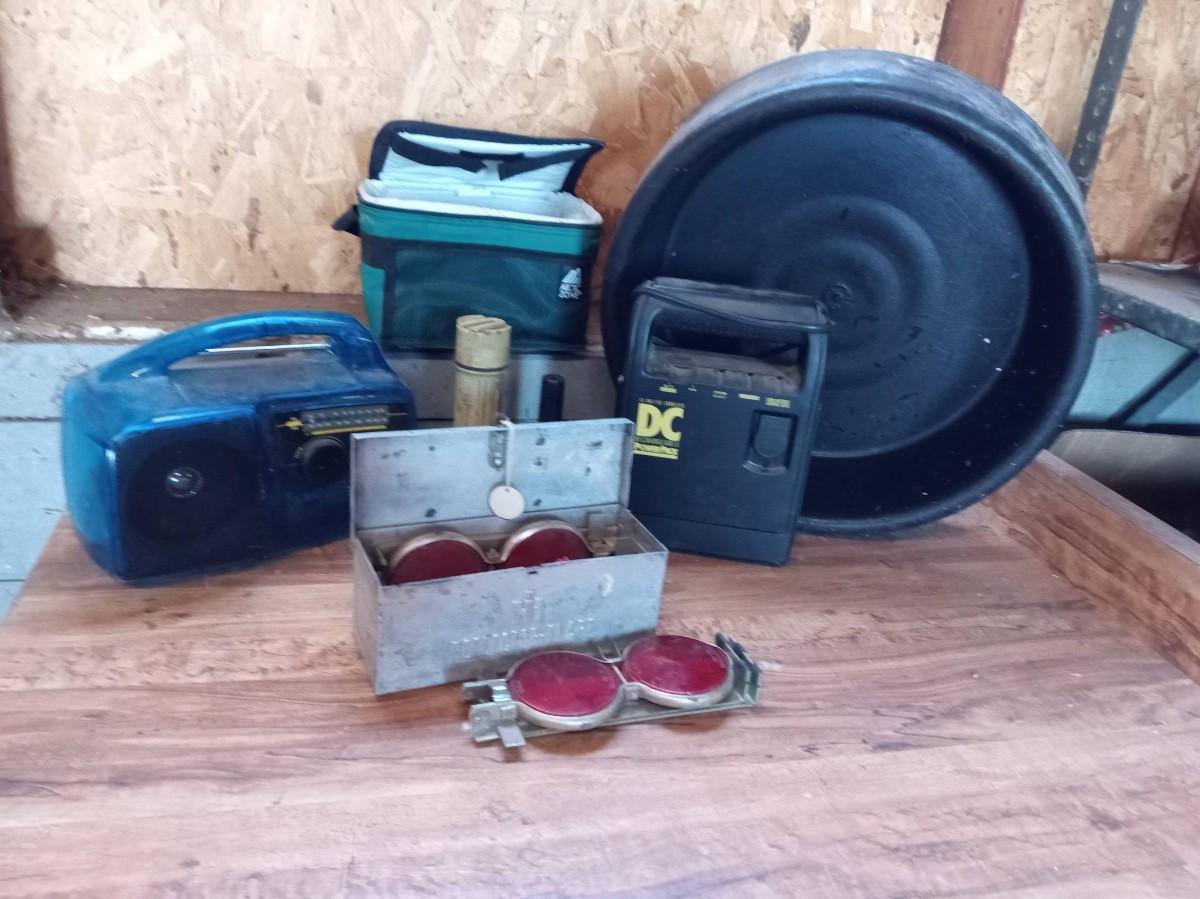 INCLUDES A WIND UP RADIO, DC RECHARGEABLE POWER PACK, FLASHLIGHTS AND SOFT SIDED SMALL COOLER