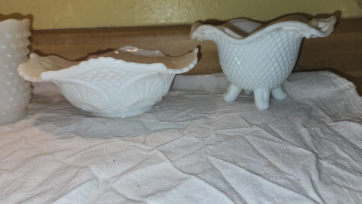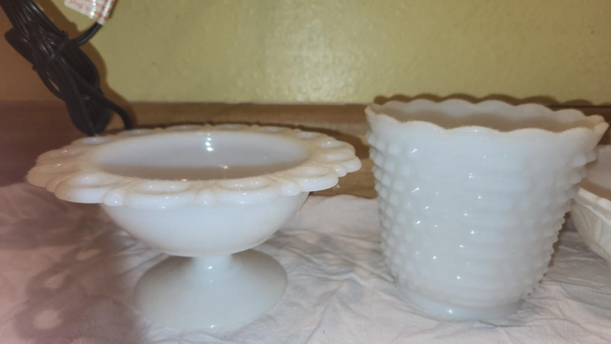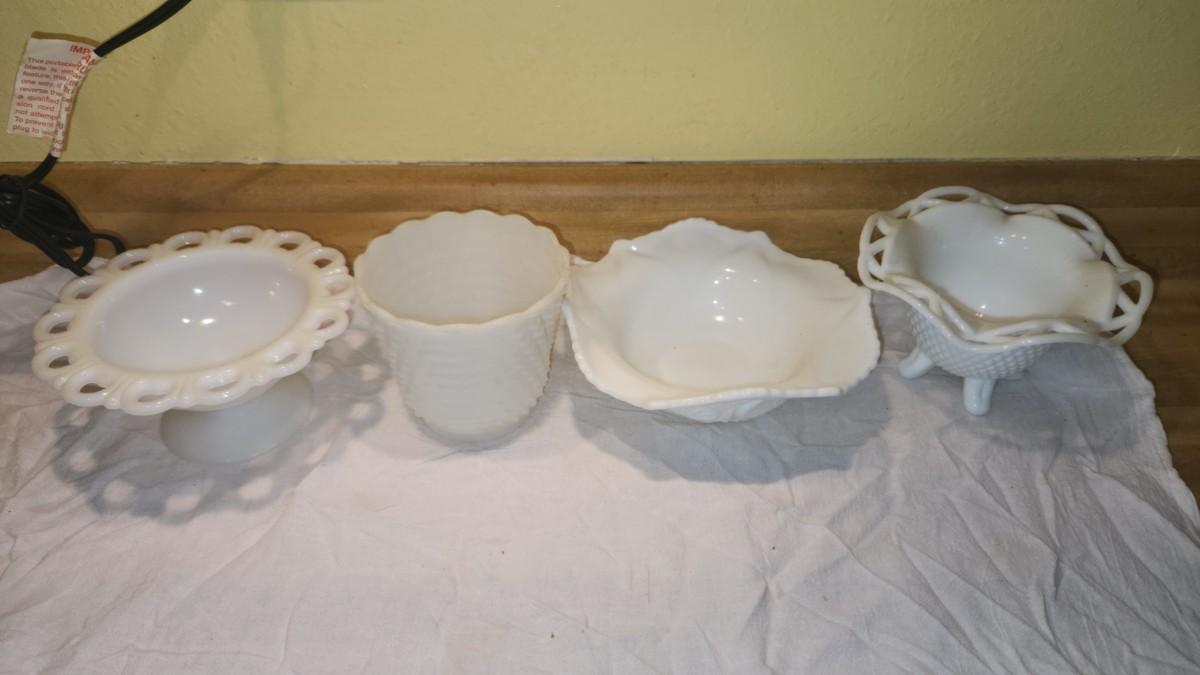 4 pieces of milk glass