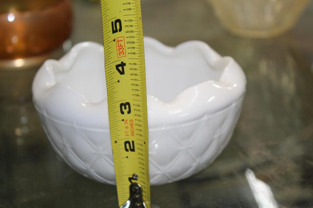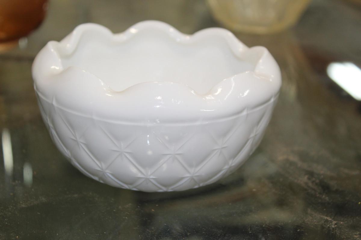 Milk glass bowl quilted diamond point pattern with crimped edge