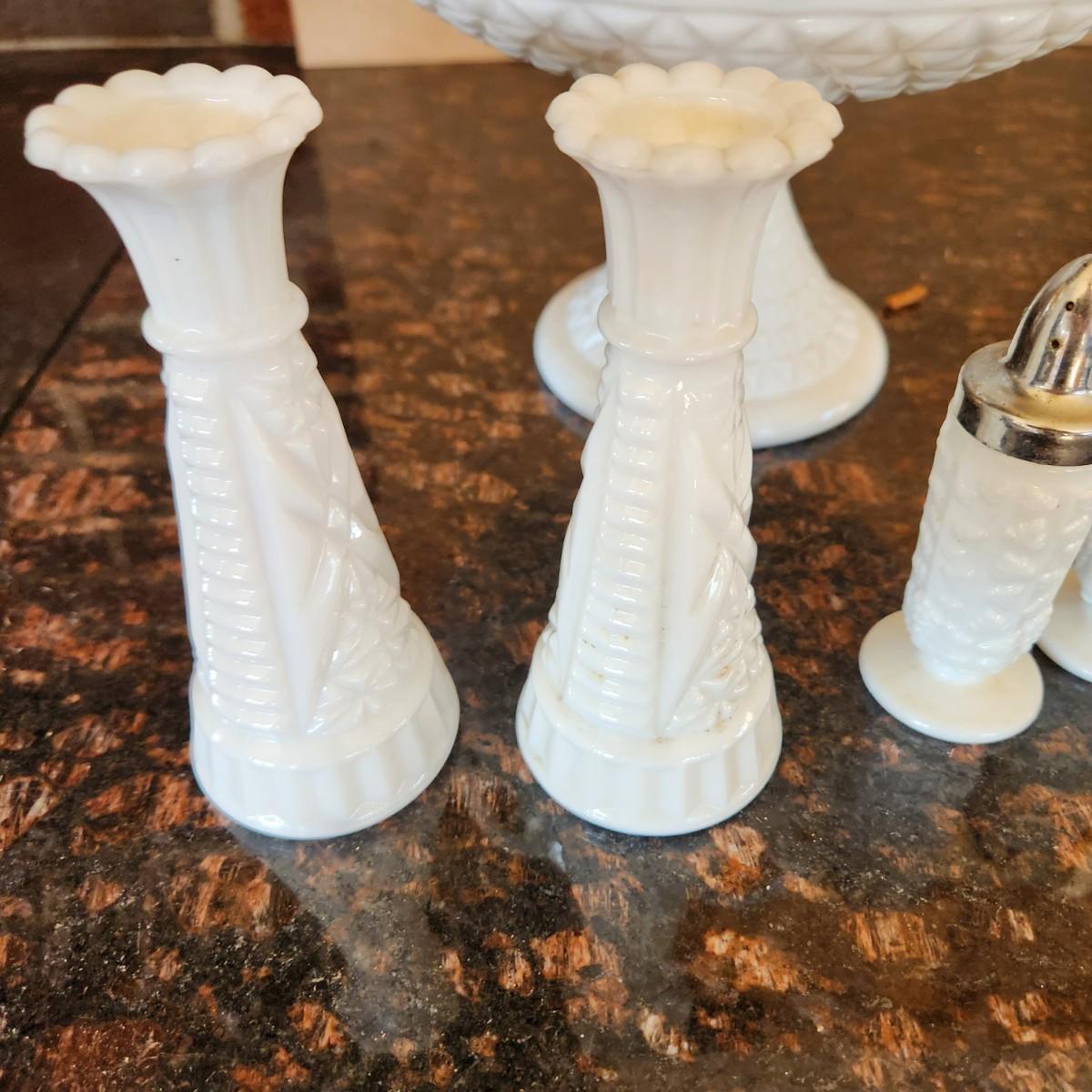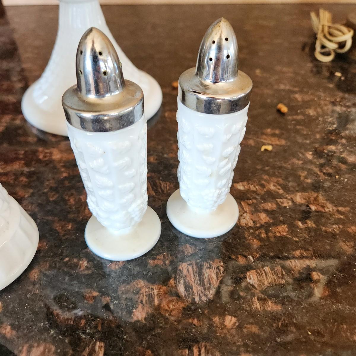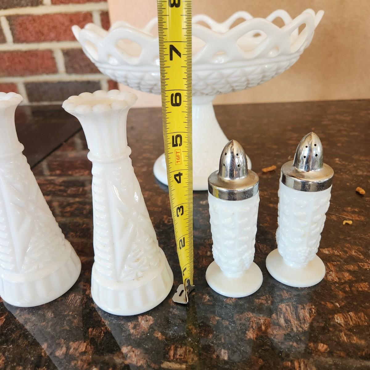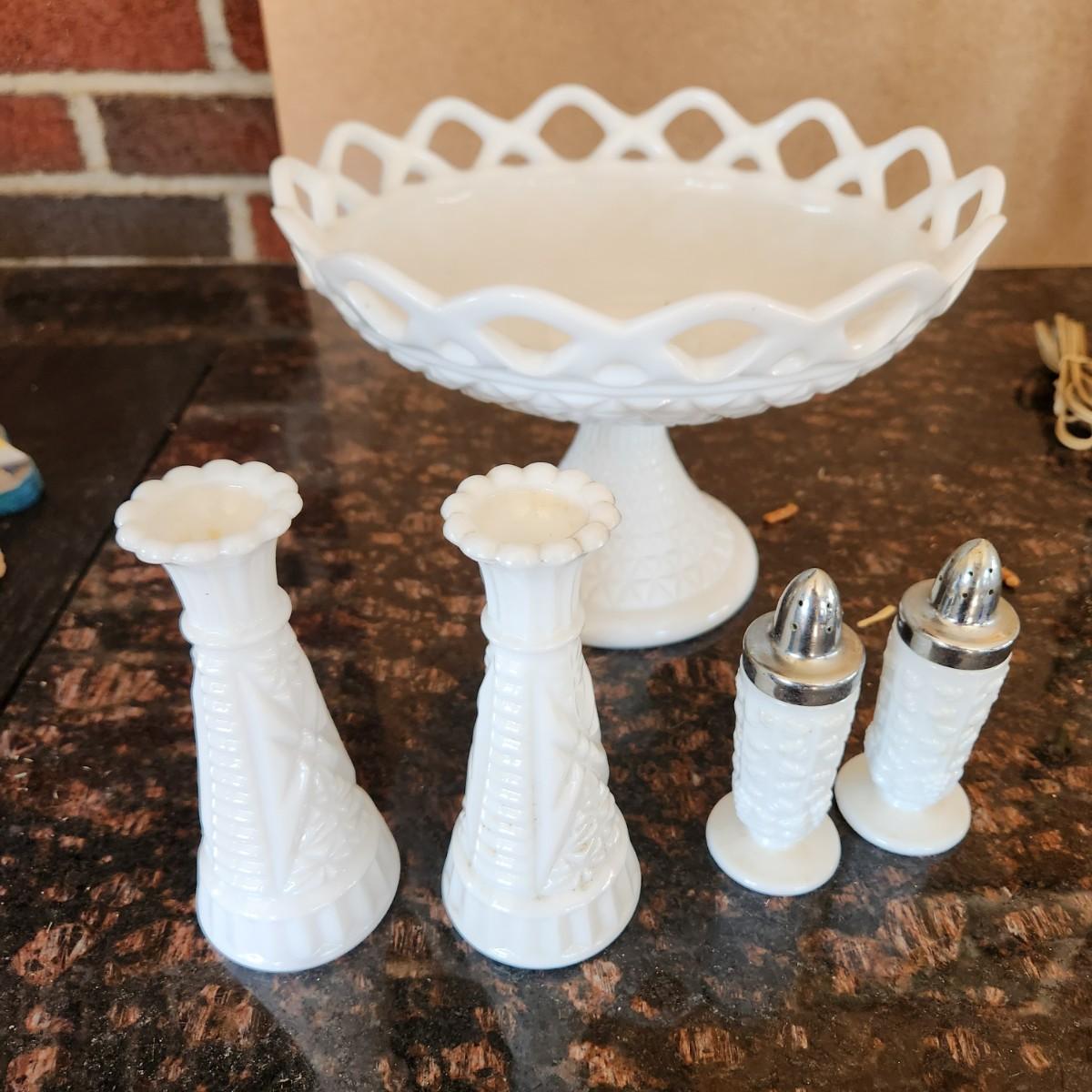 Milk Glass Bowl ,Salt Pepper shakers Vases