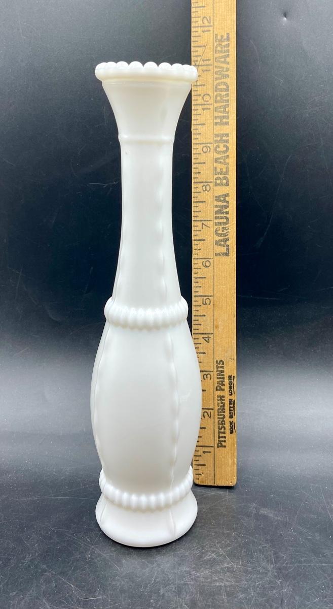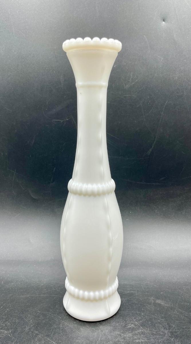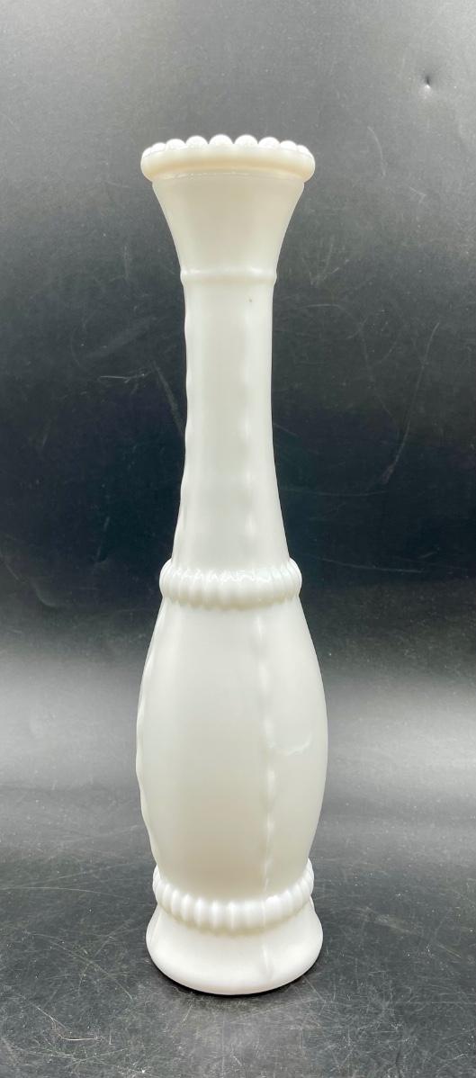 Milk, tall glass bud vase hourglass shape