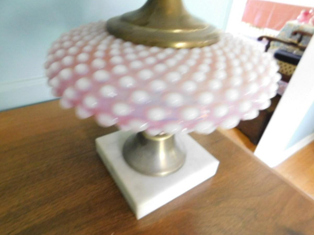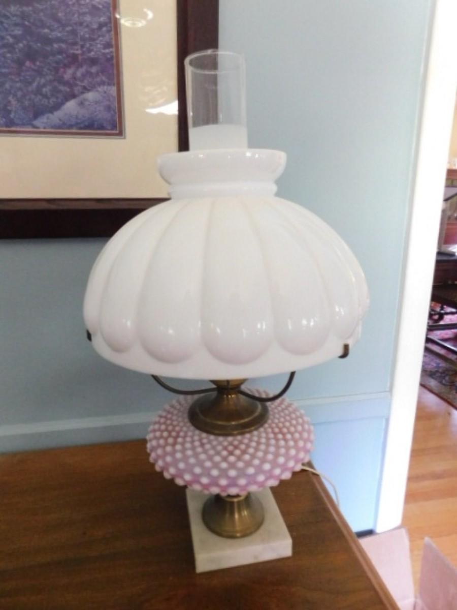Milk Glass Cascading Fluted Shade Lamp with Hobnail Glass Post Choice B   (L8b)