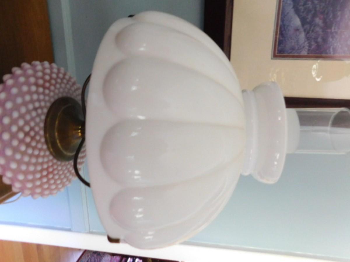 Milk Glass Cascading Fluted Shade Lamp with Hobnail Glass Post Choice B