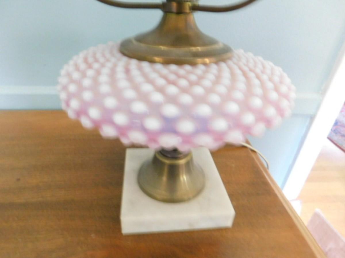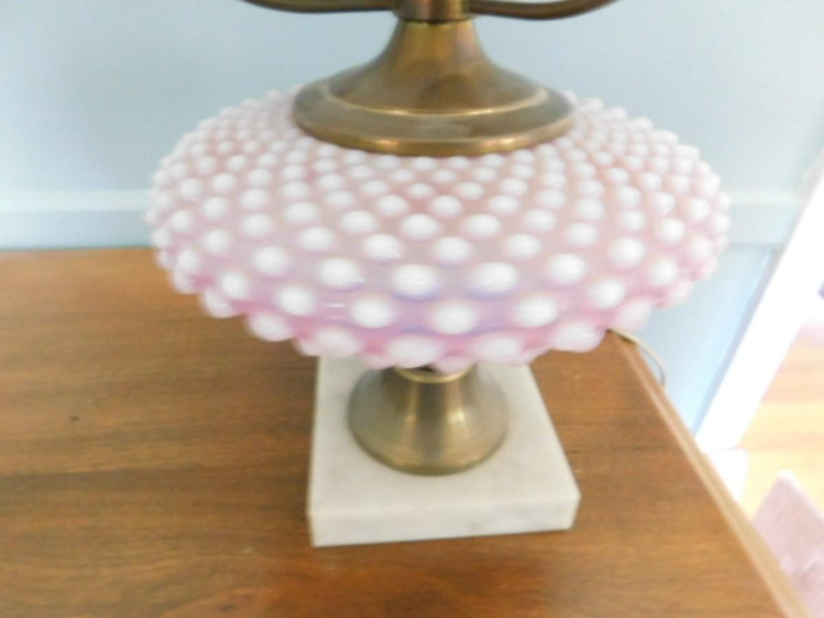 Milk Glass Cascading Fluted Shade Lamp with Hobnail Glass Post Choice C   (L8c)