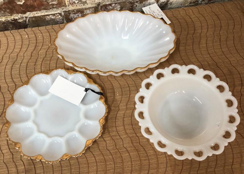 Milk Glass Collection Egg Dish Bowl Plate