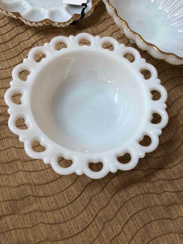 Vintage milk glass in good condition. If you need shipping please be aware that the cost of shipping may be more than what the item cost. All items ship from zip code 84109, you can go to USPS.com for estimates of cost.
