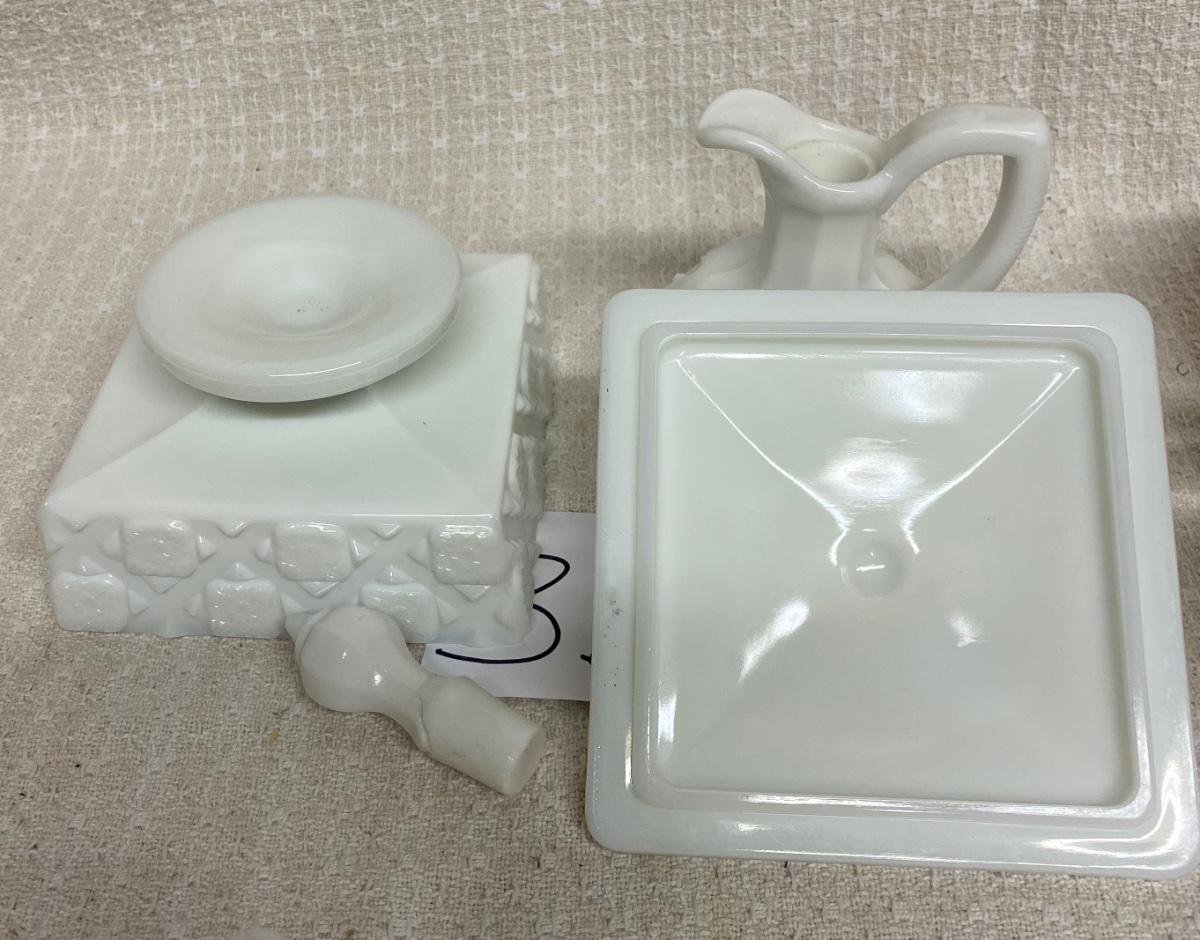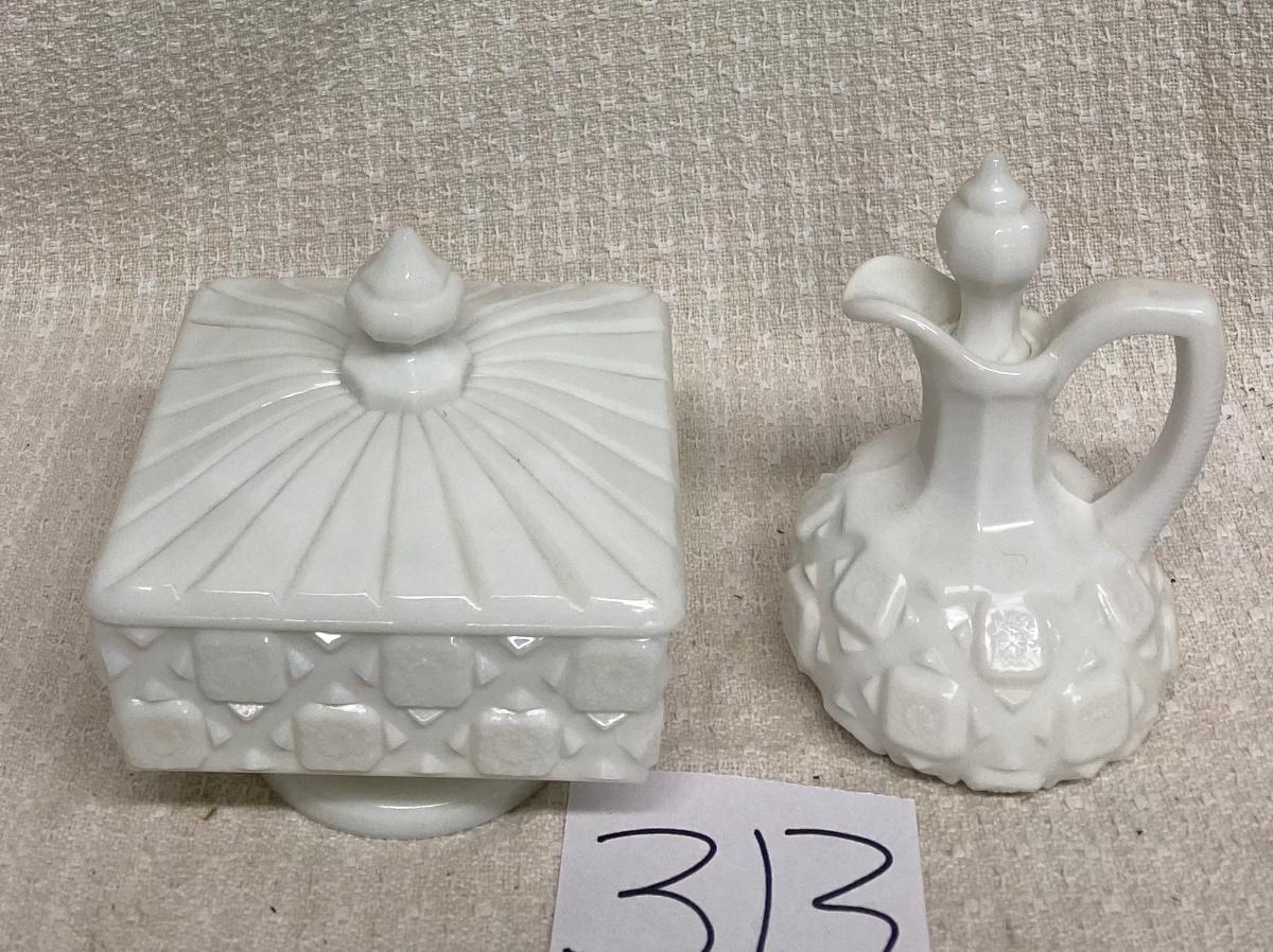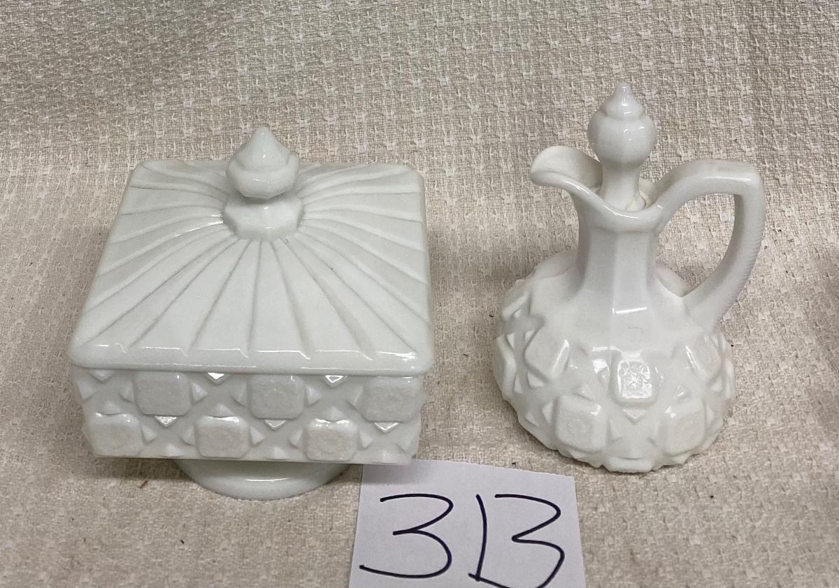 Milk Glass Cruet & Westmoreland milk Glass Square Box with Lid