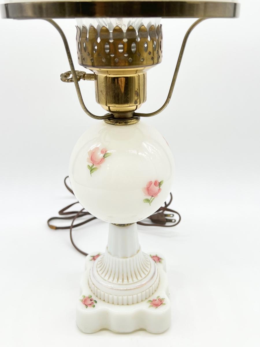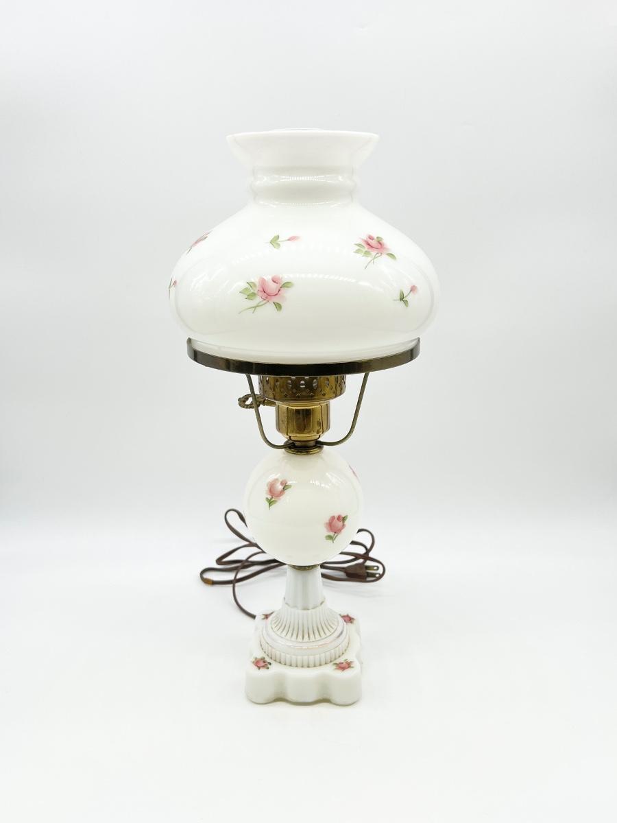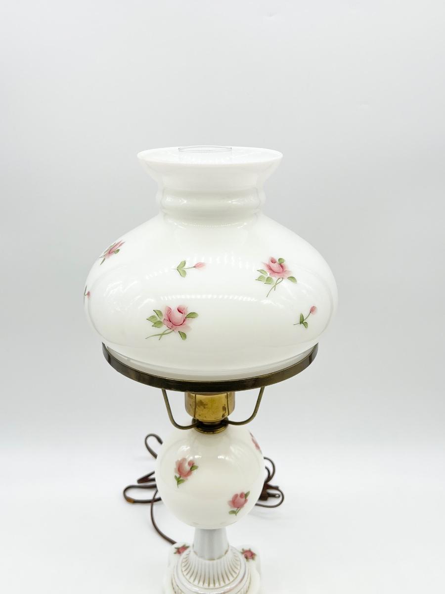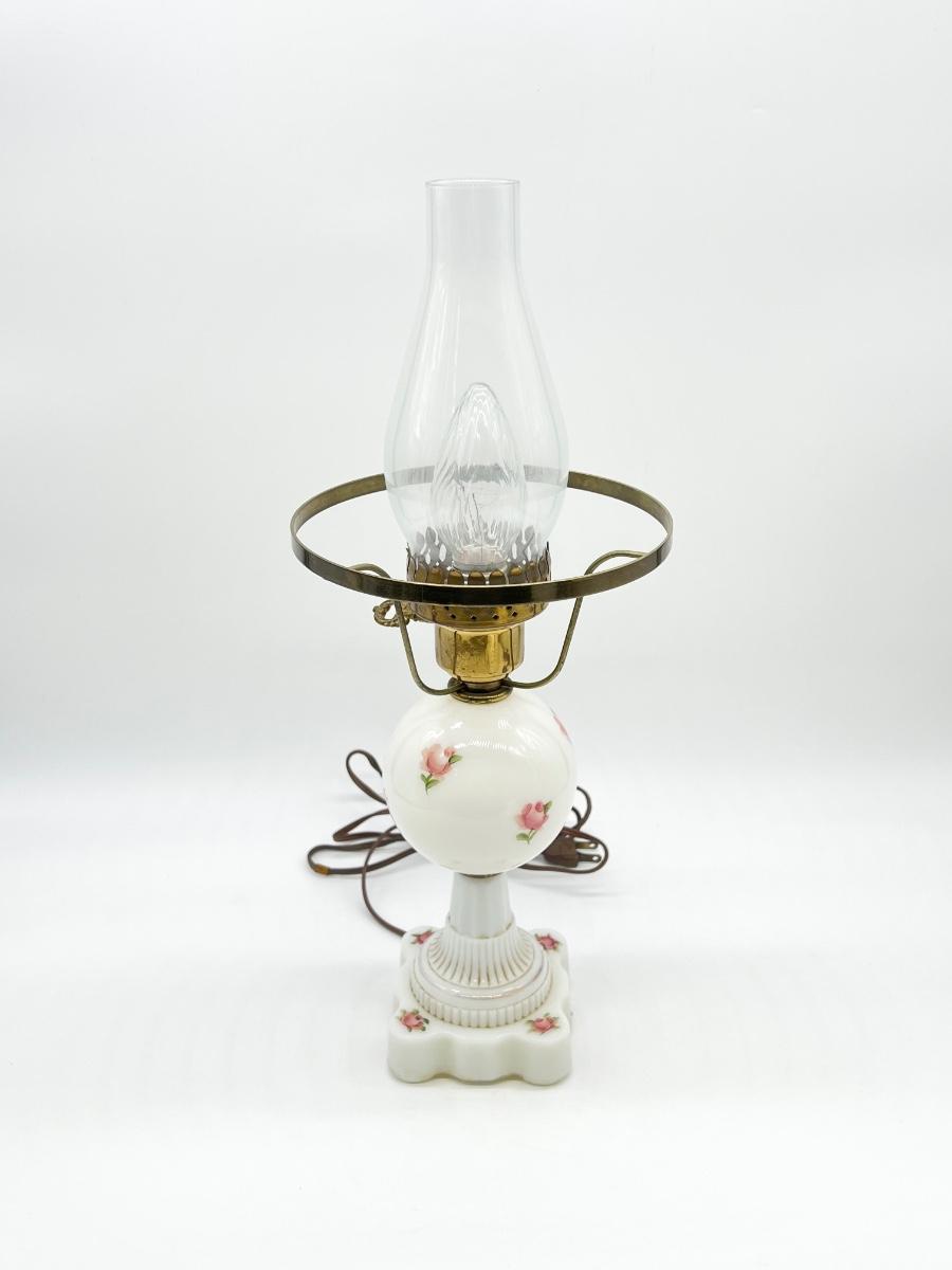 Milk Glass Floral Hurricane Table Lamp