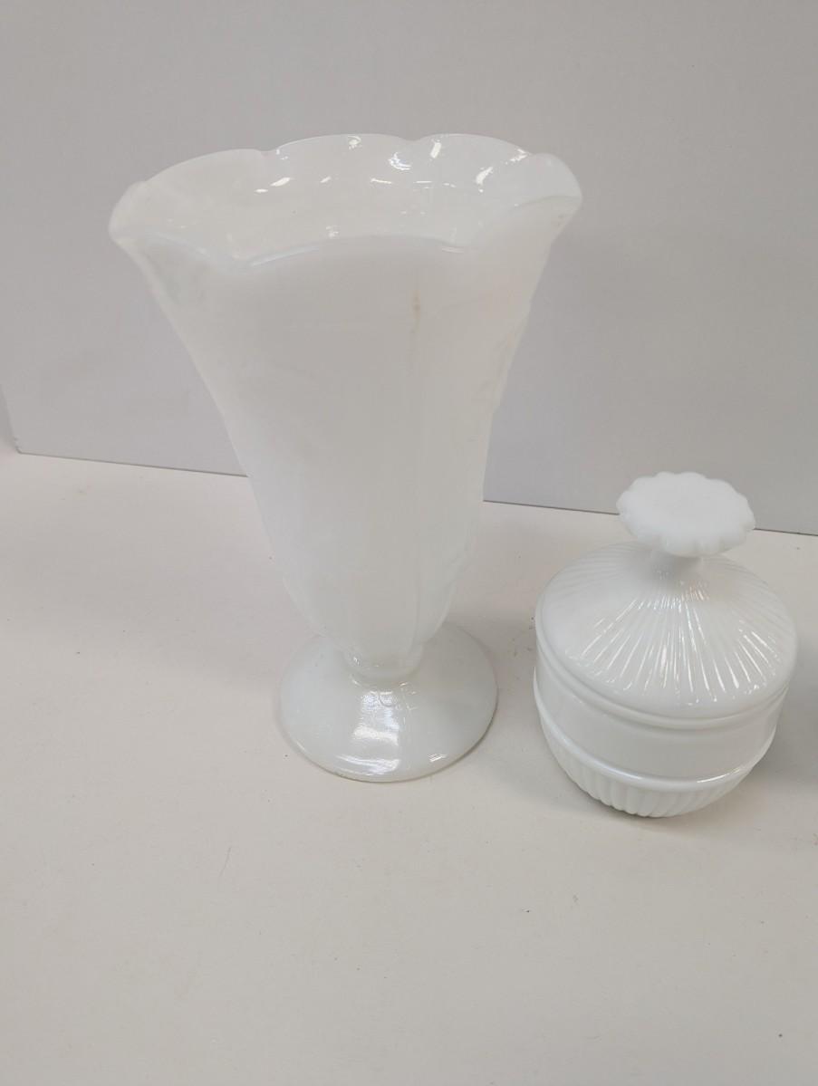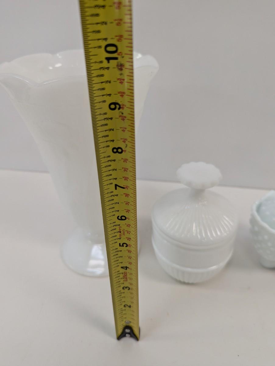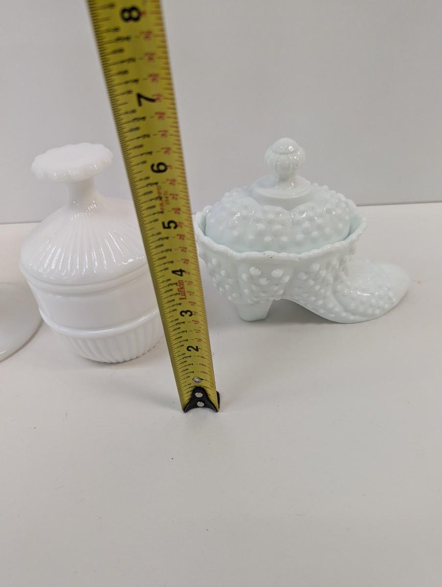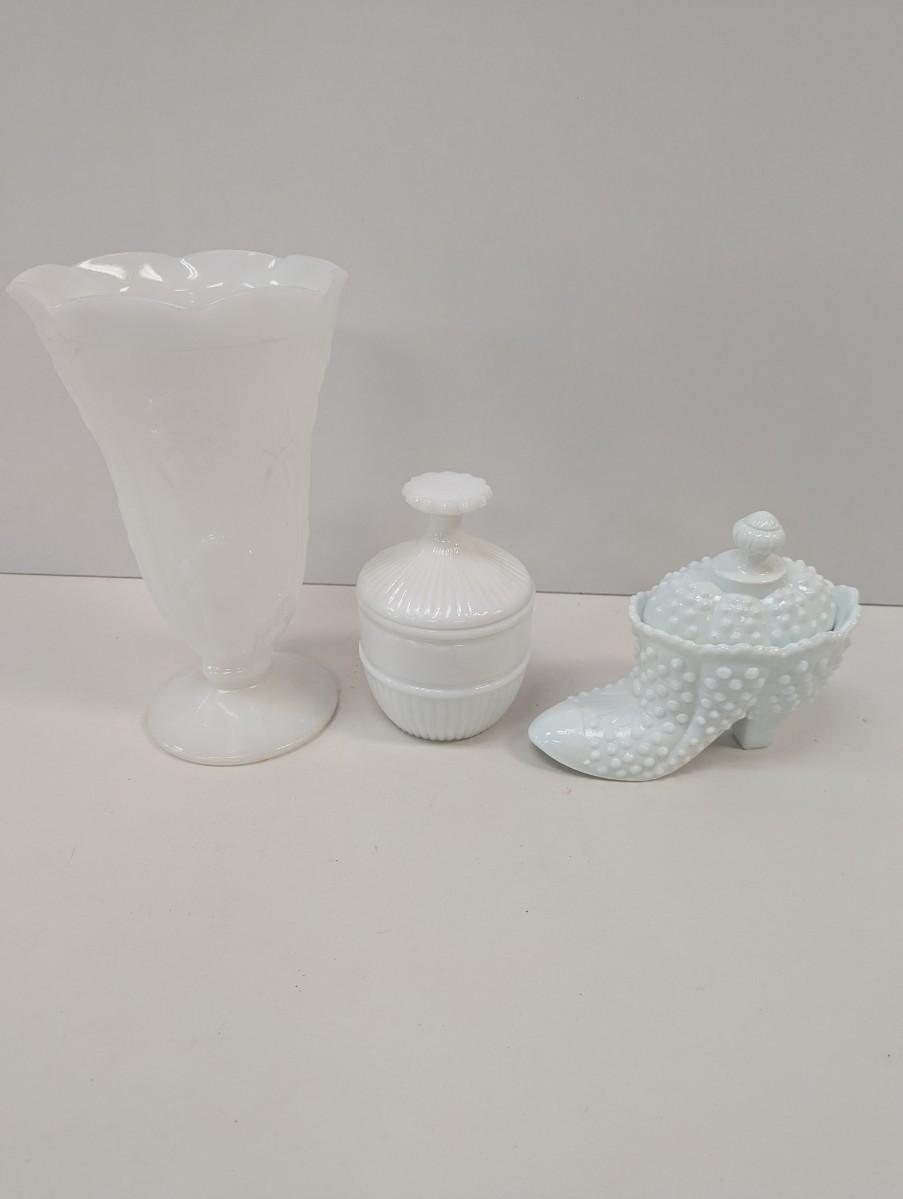 Milk Glass Hobnail Boot Candy Dish & Vase
