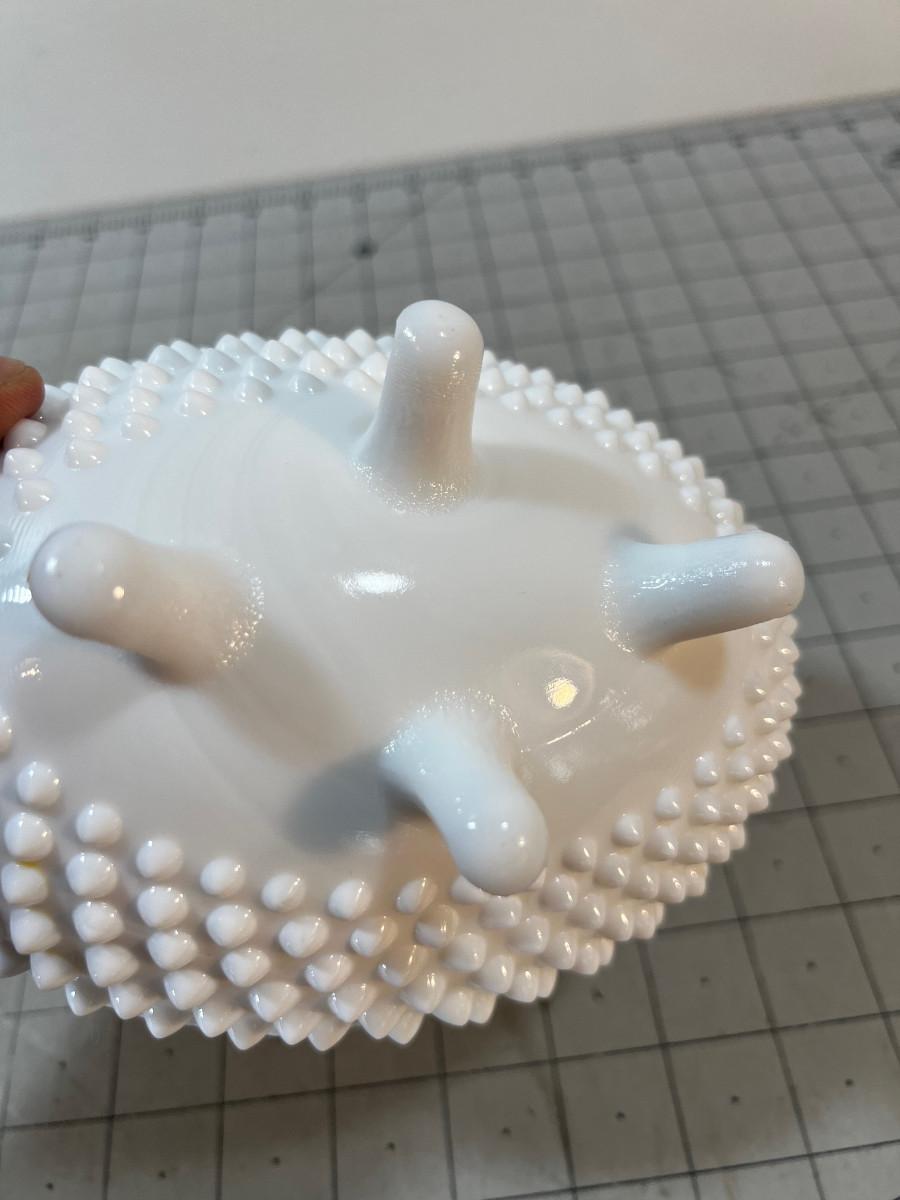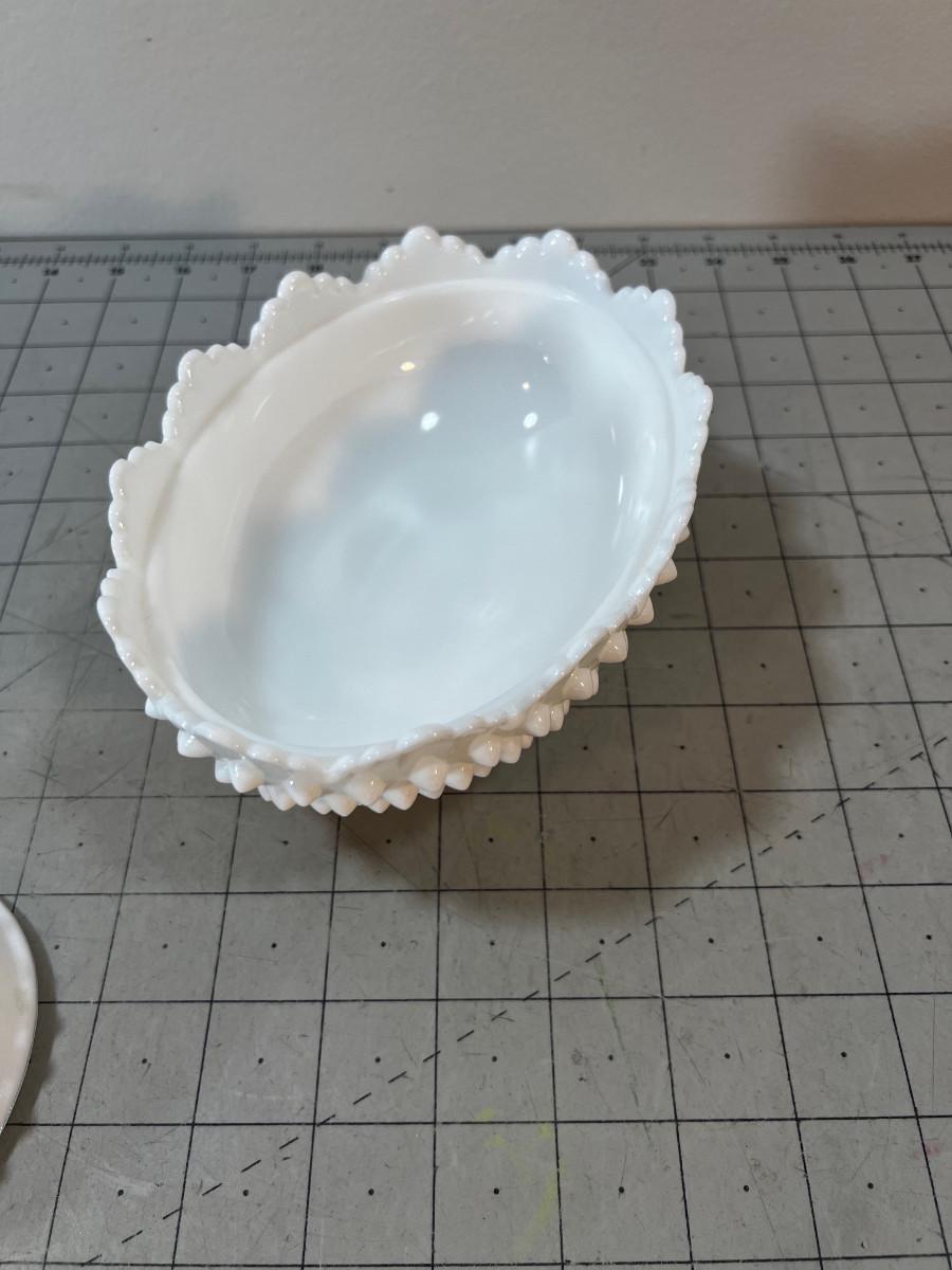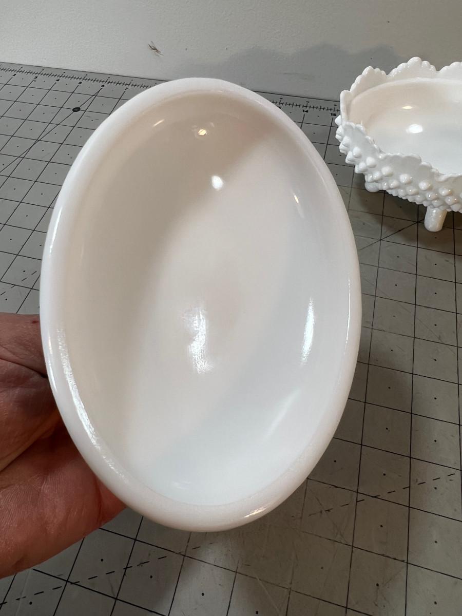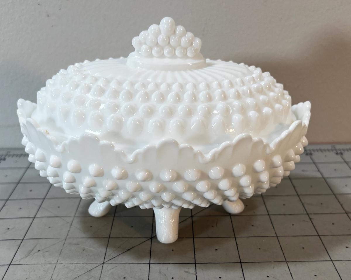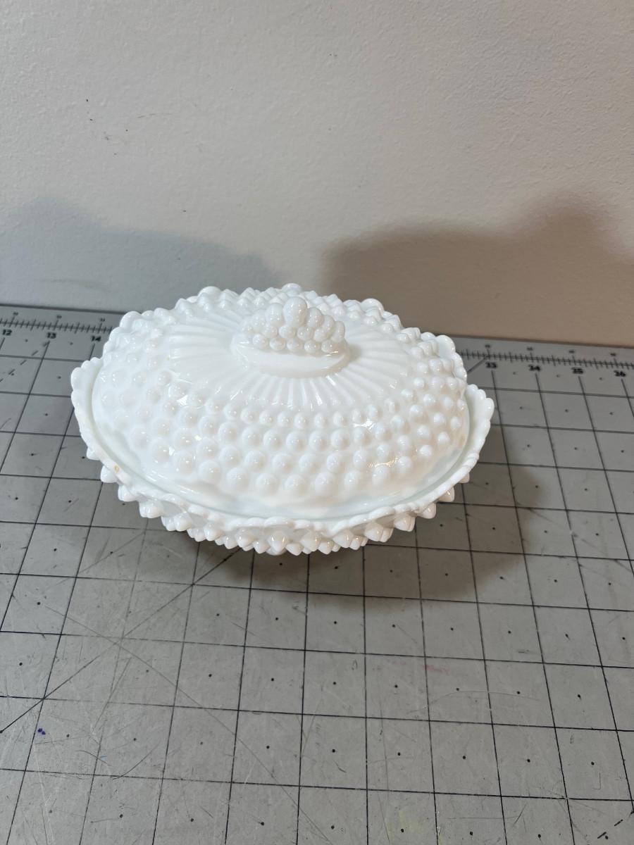 Milk Glass Hobnail Covered Oval Footed Dish