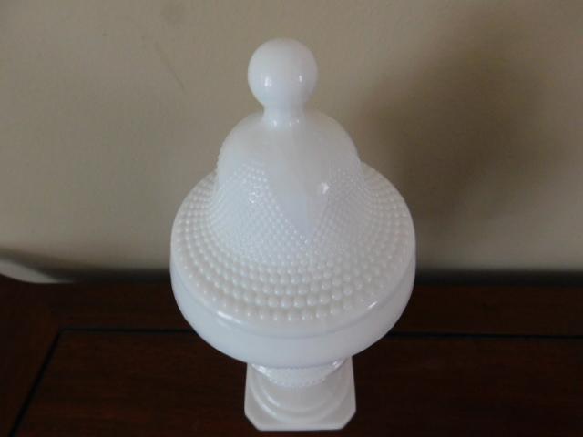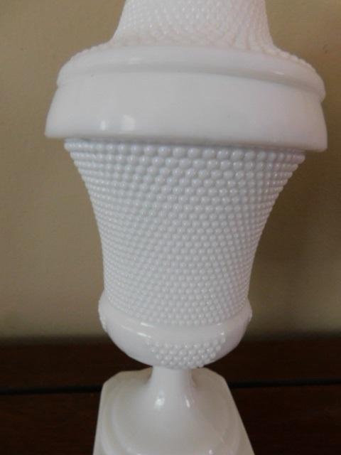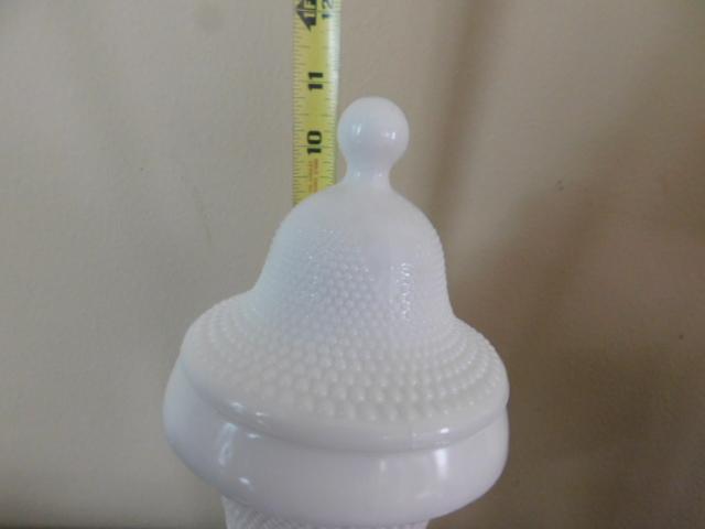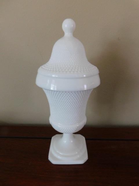 Milk Glass Hobnail Footed Urn with Lid 11"
