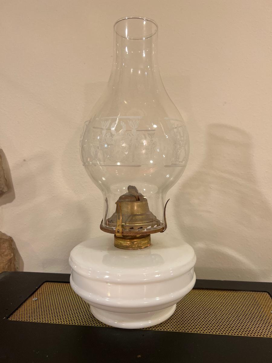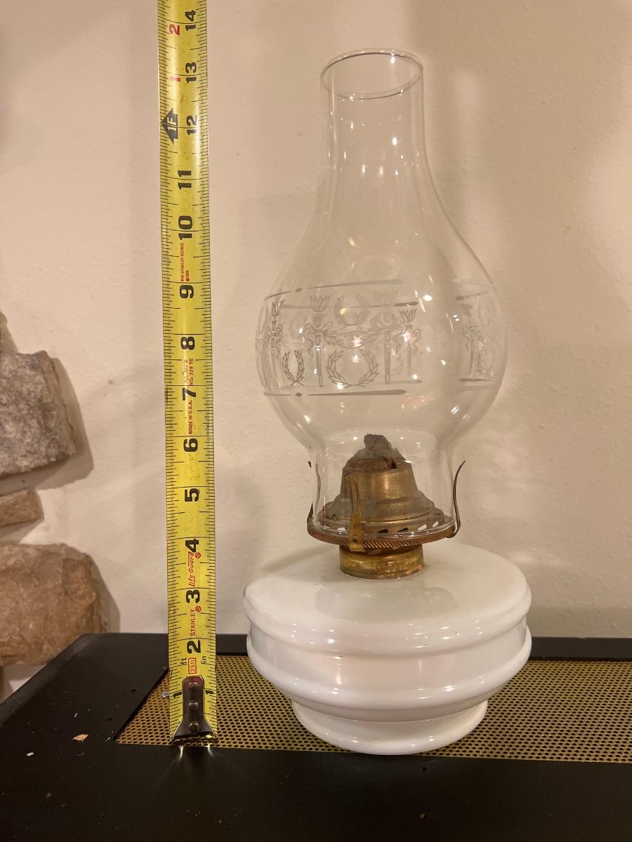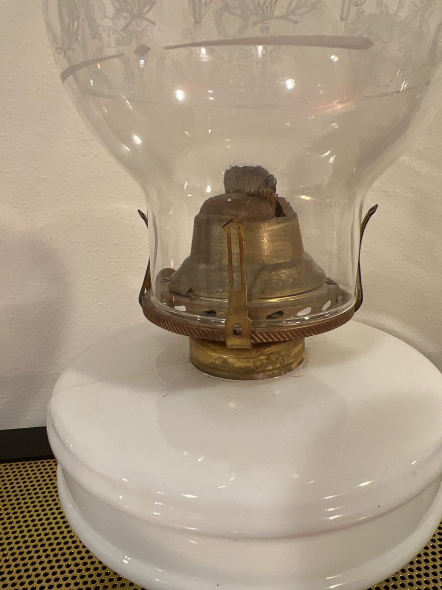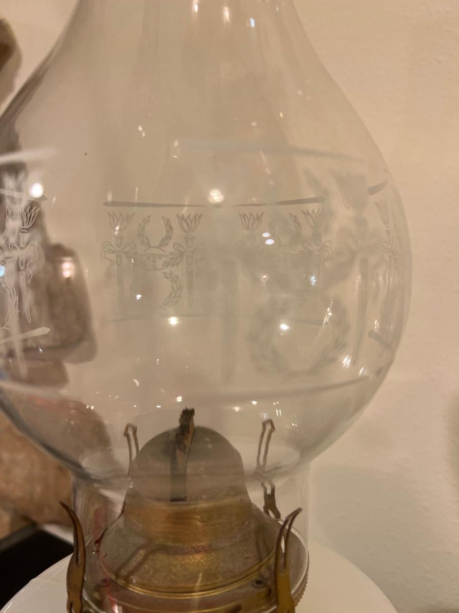 Bottom of the lamp is vintage the globe is a replacement. Excellent condition