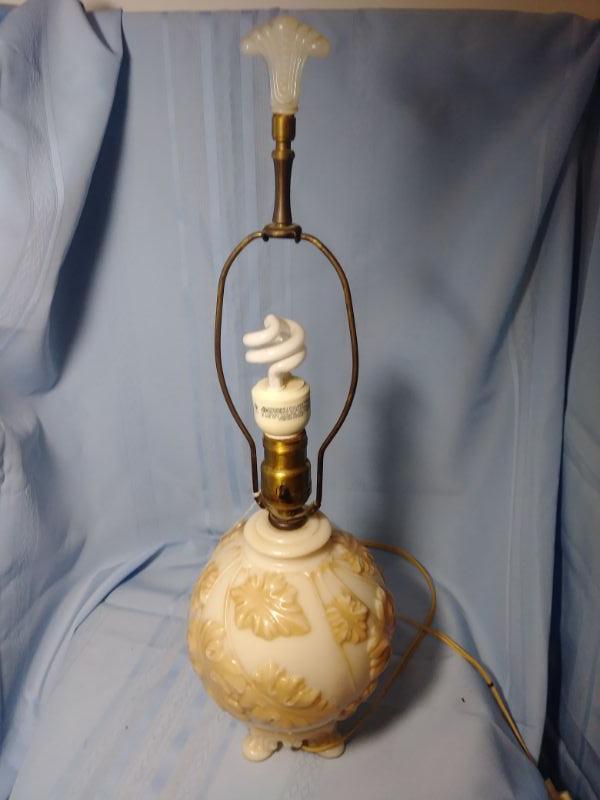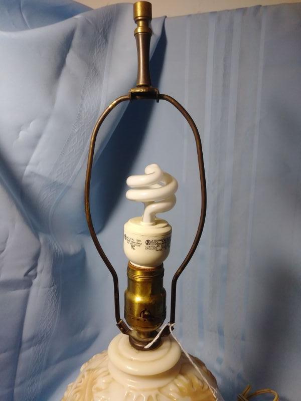 Milk Glass Lamp with Brass Base 7"W x 21"H