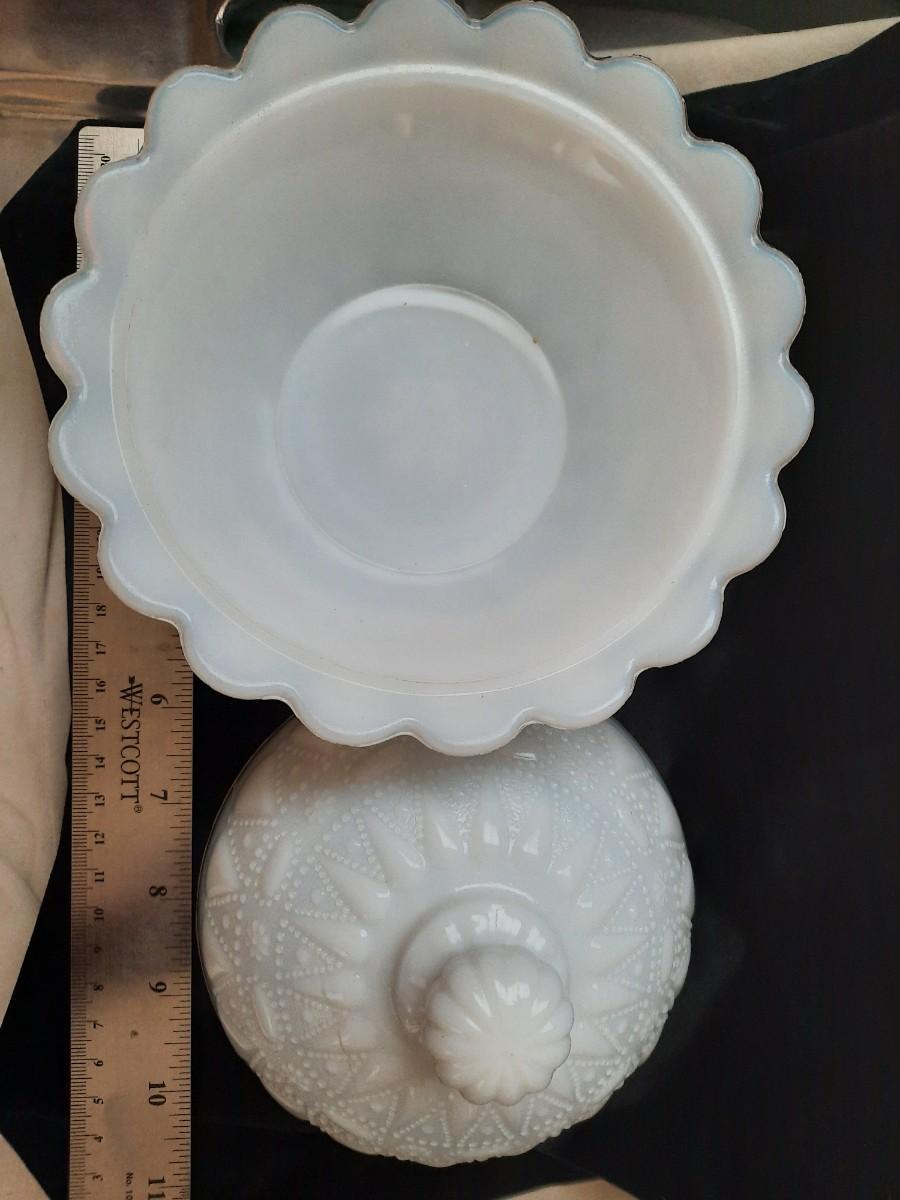 White milk glass candy dish.