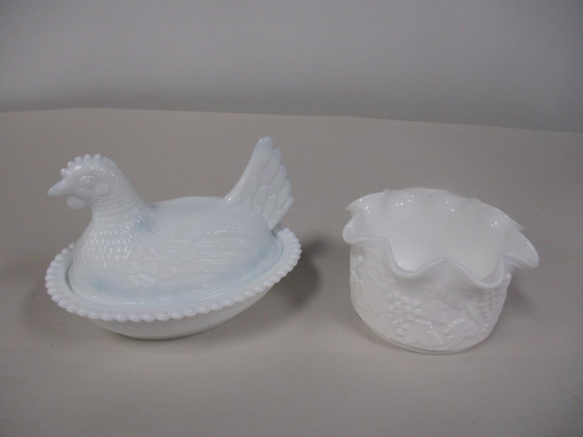 Milk Glass Nesting Hen Imperial Glass Bowl With Grapevine Design Shipping by third party only (UPS Store)