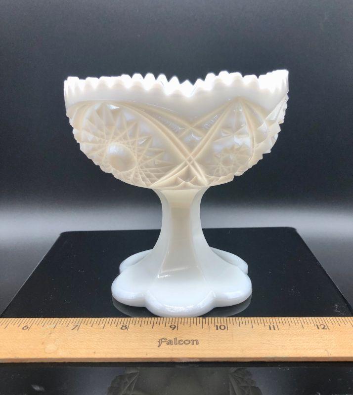 Milk Glass Pedestal Compote Dish, Kemple, sawtooth edge,