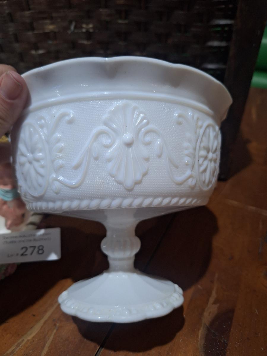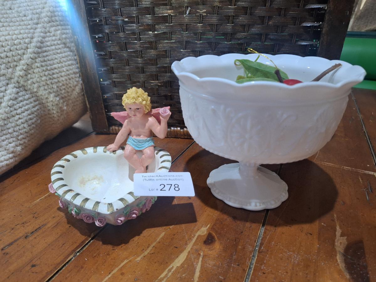 Milk glass pedestal compote- no lid and heart shaped trinket