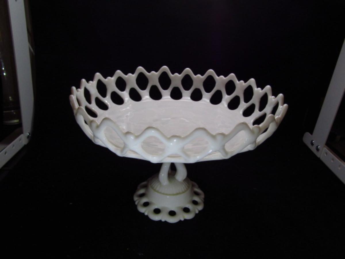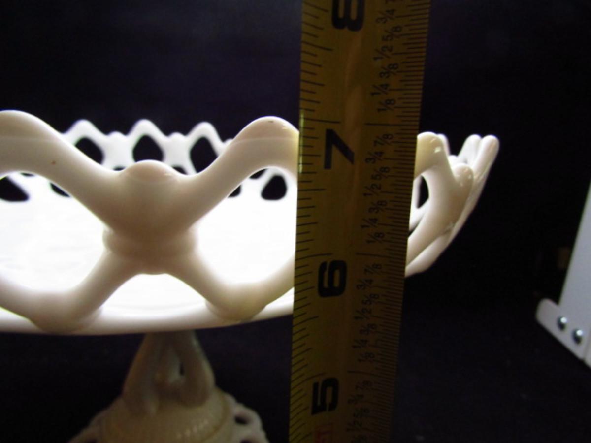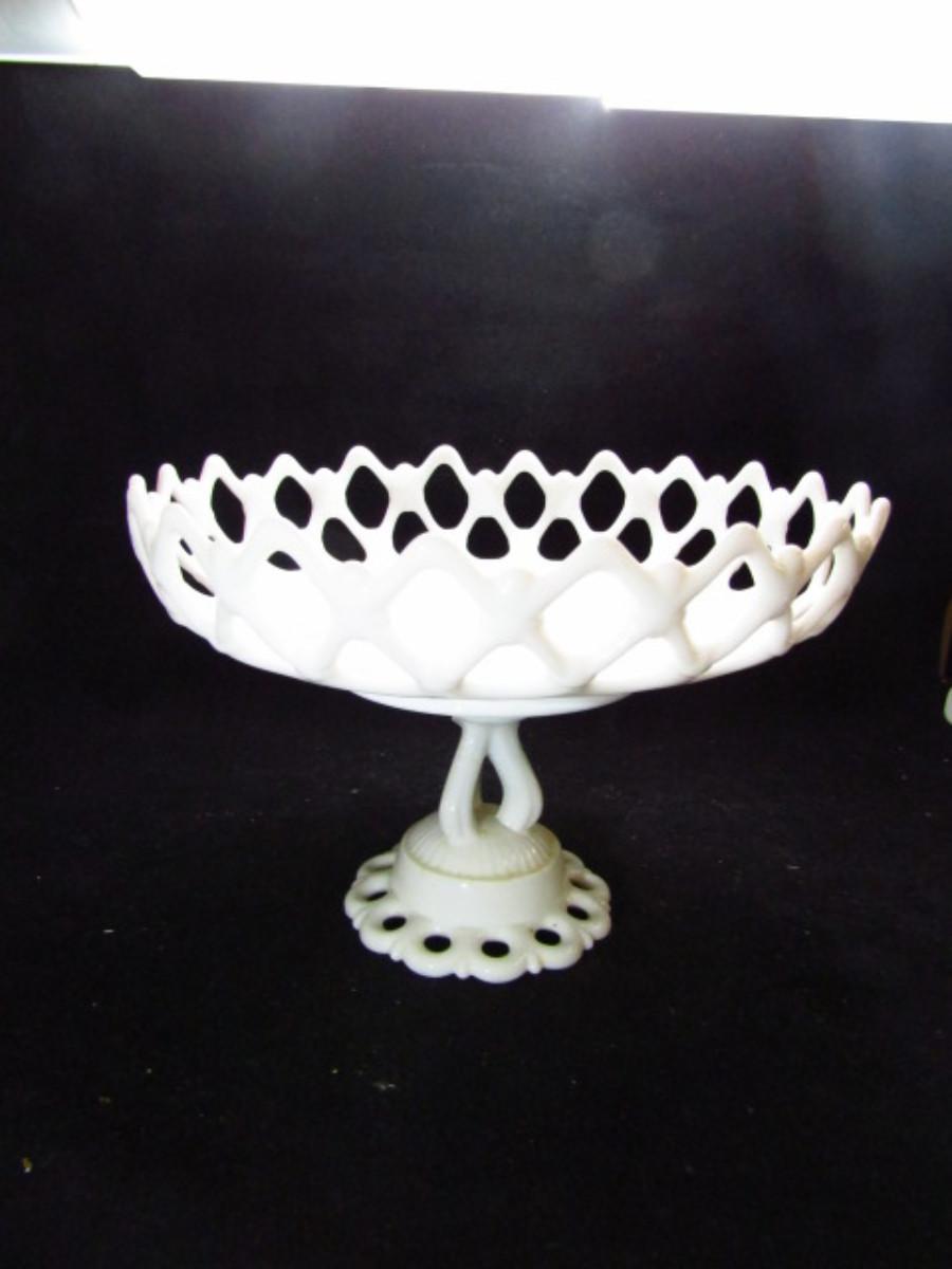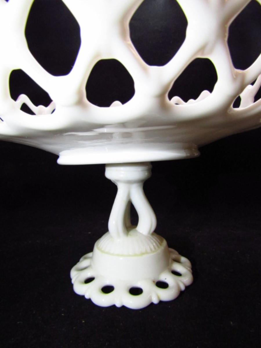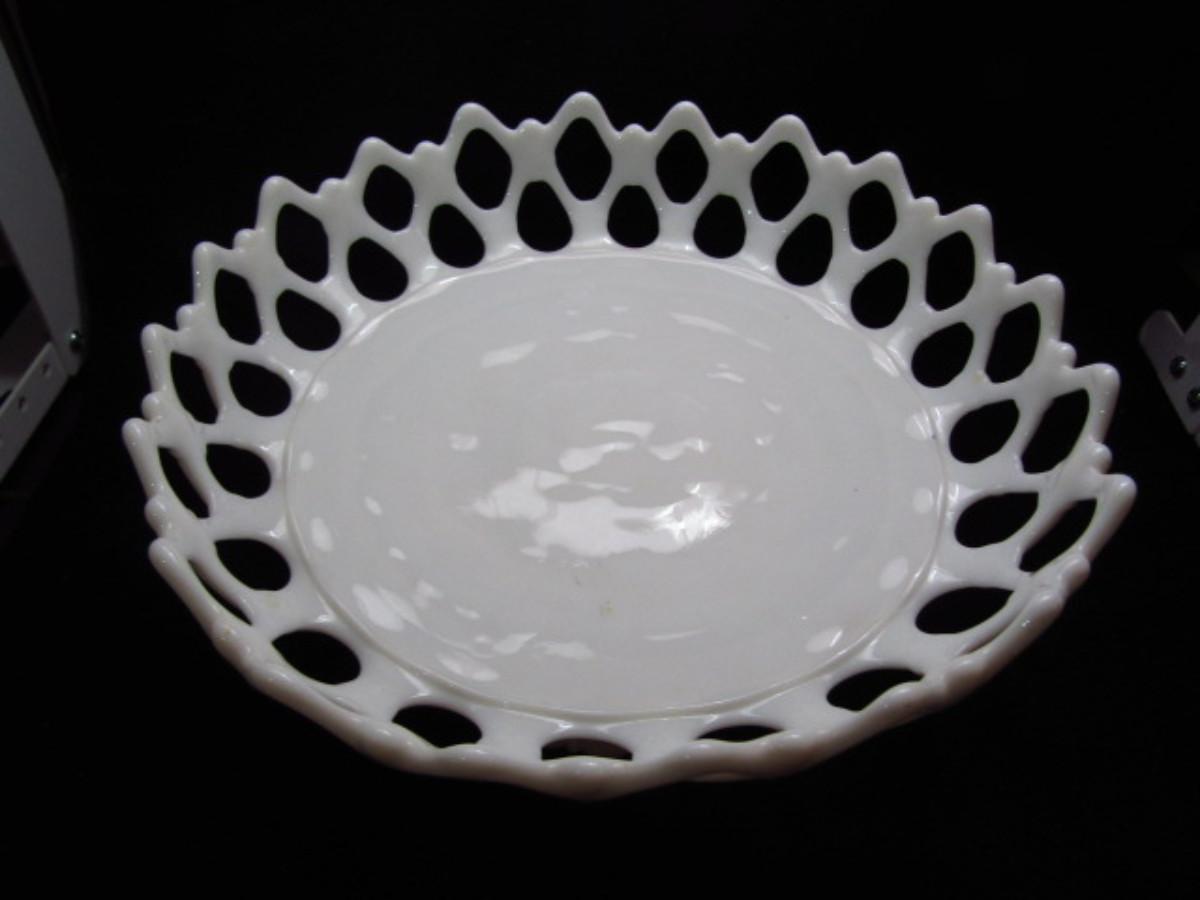 Milk Glass Reticulated Pedestal Bowl- Approx 10" in Diameter (#495)