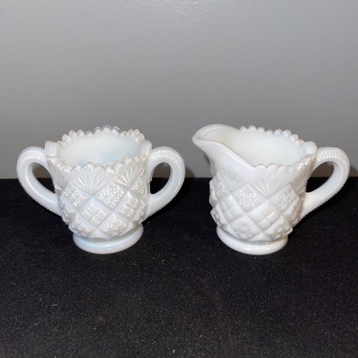 Milk Glass Trio:  A Keepsake box & Creamer & Sugar Dish (K-SW)