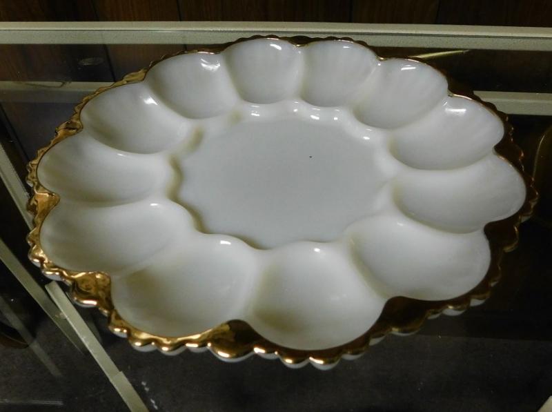 Milk Glass with Gold Trim Egg Plate