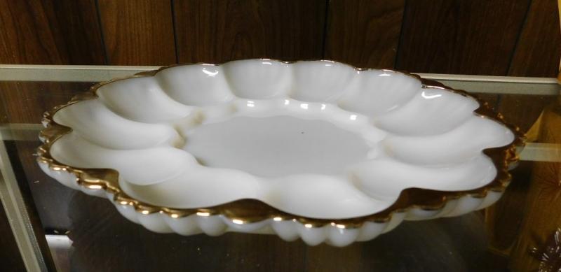 Milk Glass with Gold Trim Egg Plate (2 0f 2)