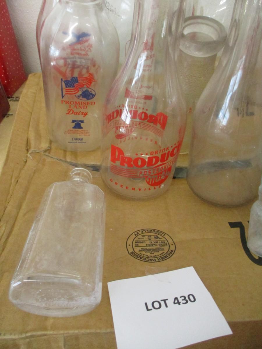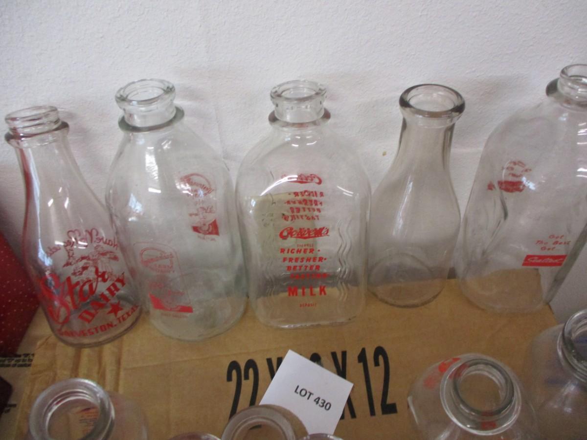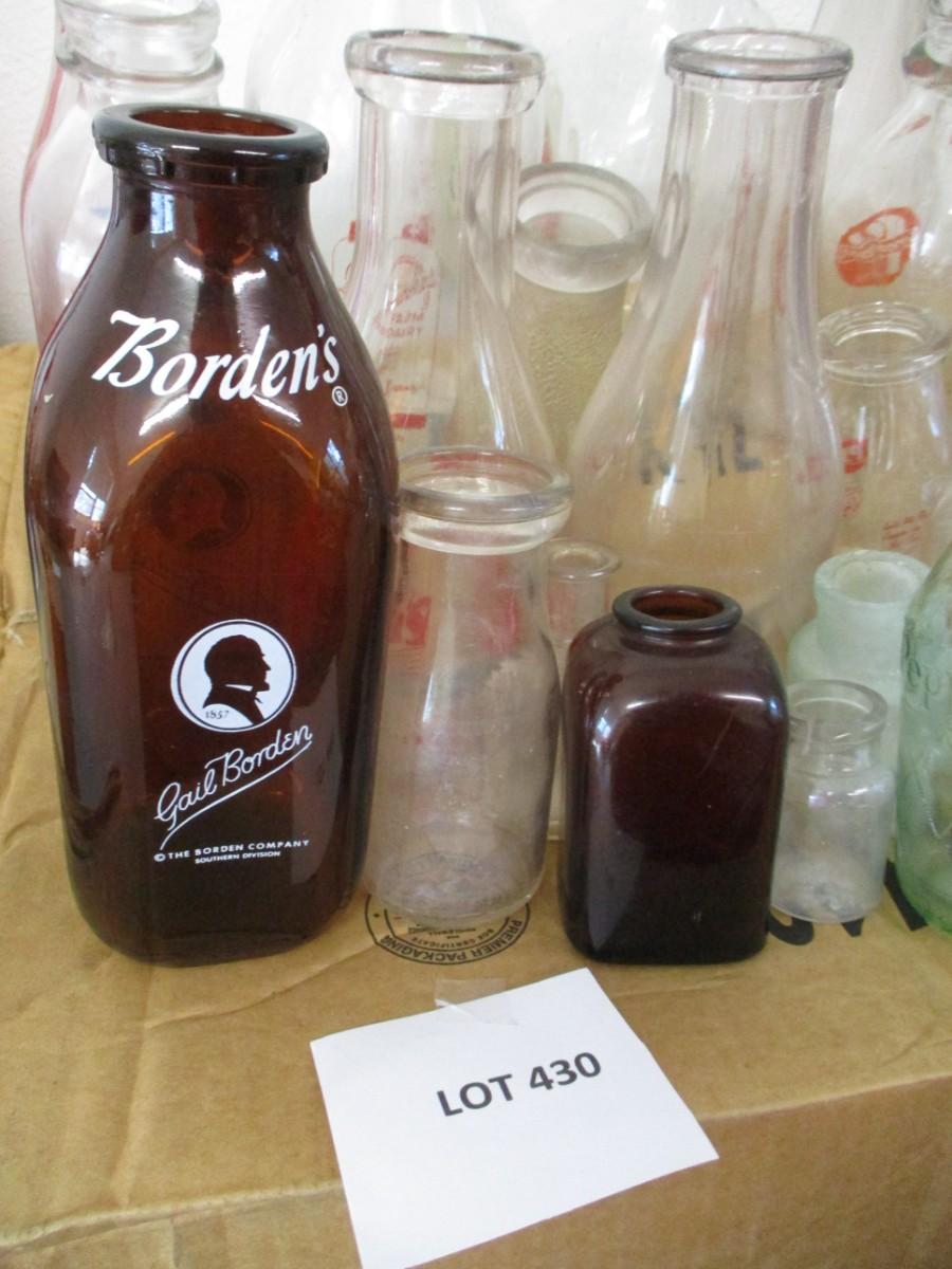 Brown pill bottles, baby bottles. Milk bottles from Texas Dairy's which are now closed.