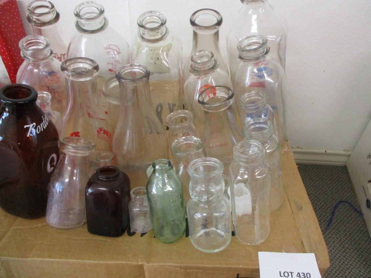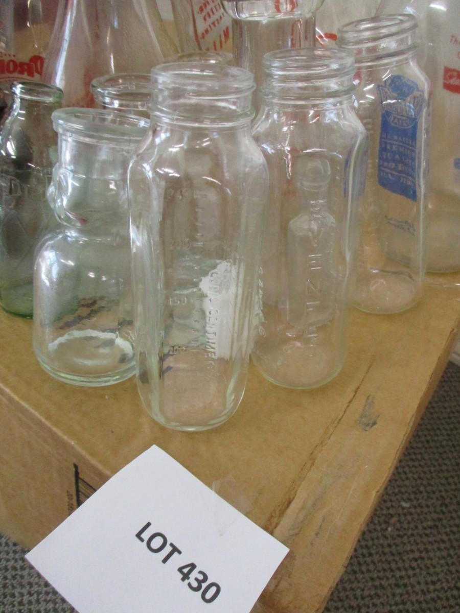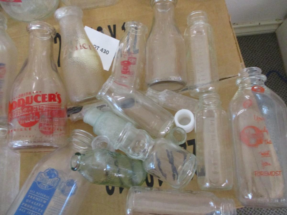 Brown pill bottles, baby bottles. Milk bottles from Texas Dairy's which are now closed.