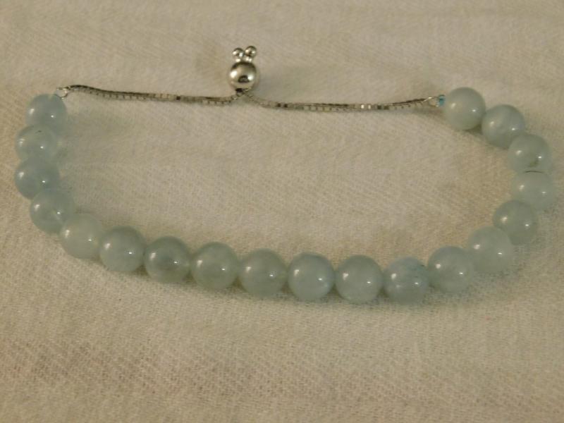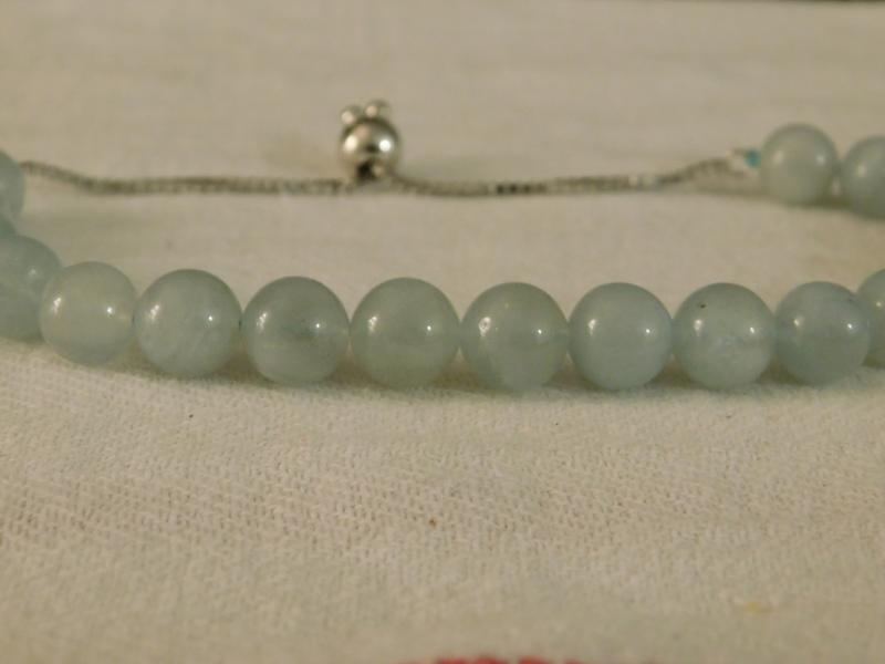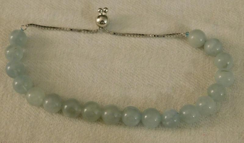 Milky Aquamarine Adjustable Beaded Bracelet Platinum Over Sterling