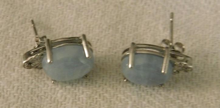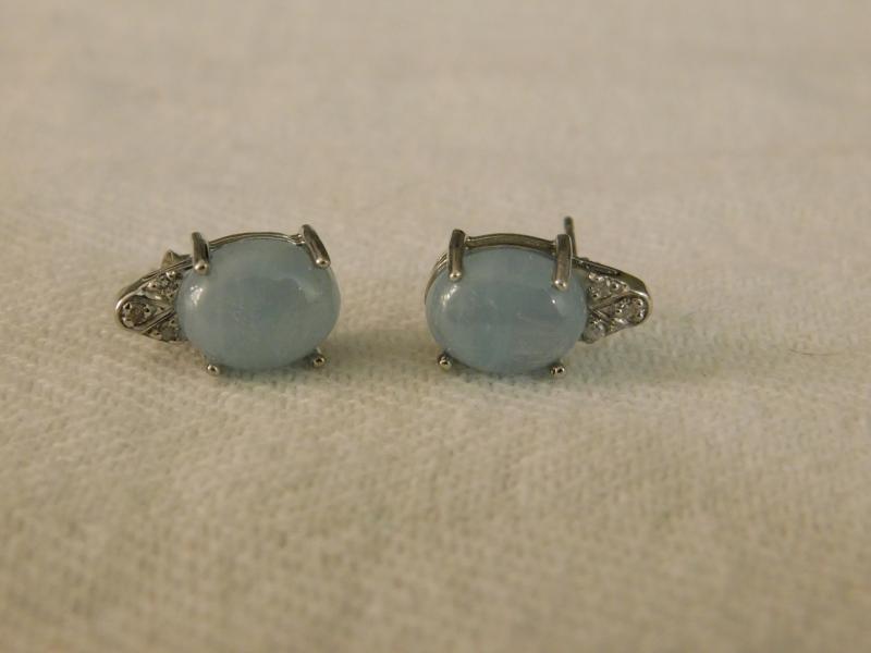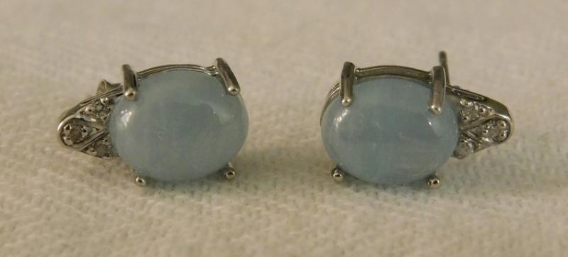 Milky Aquamarine Stud Earrings with White Topaz Accents Platinum over Sterling