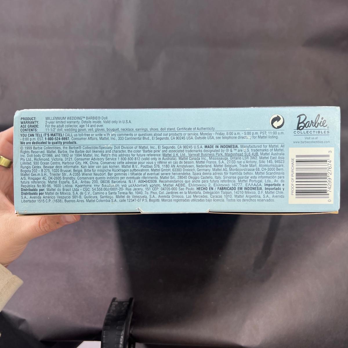 This Millennium Wedding Barbie looks wonderful in white. Doll hasn't been out of its box. Produced by Mattel in 1999. **|** Please see photos for details and condition. ::: Shipping is available on this lot. If you require shipping you must let us know at the close of the auction. We will coordinate with you after the item has been won. Shipping fees will include insurance up to or exceeding the value of all items being mailed. If you have any questions regarding this lot please contact the auctioneer either via this website, by direct email or by phone. PICK UP TIMES and other important information can be found in the TERMS and DESCRIPTION of the auction. Please take a look for pertinent information. Thanks!