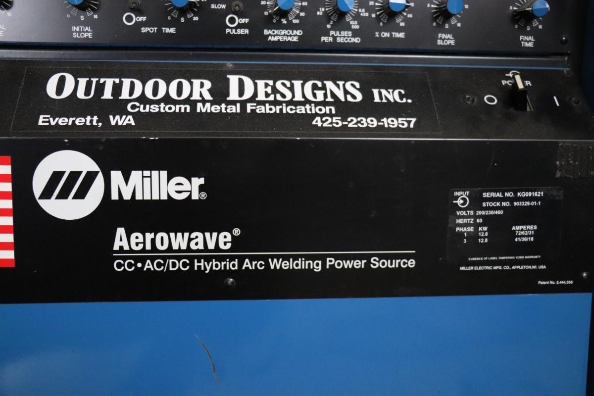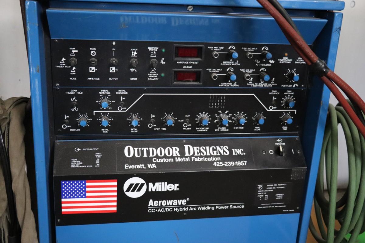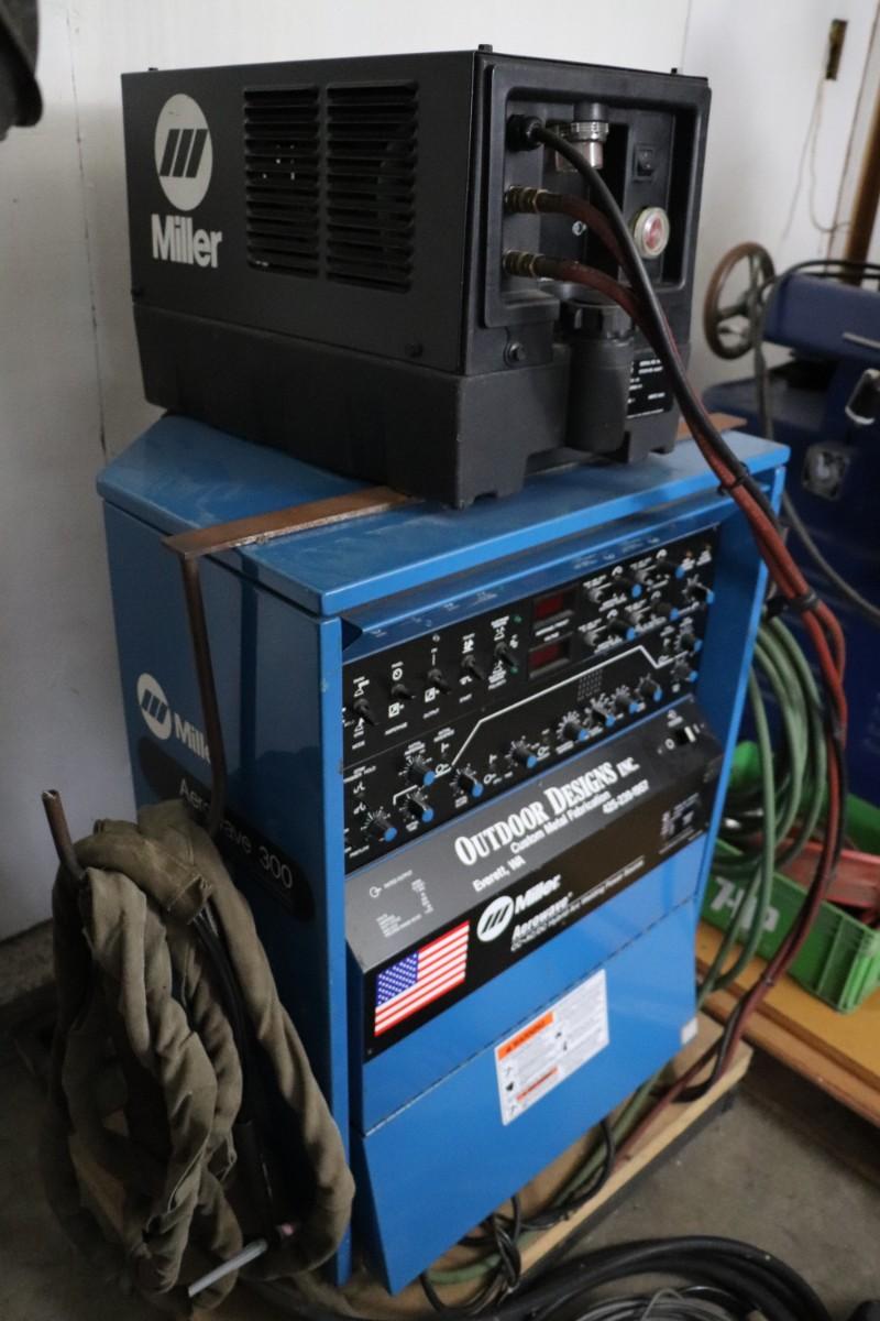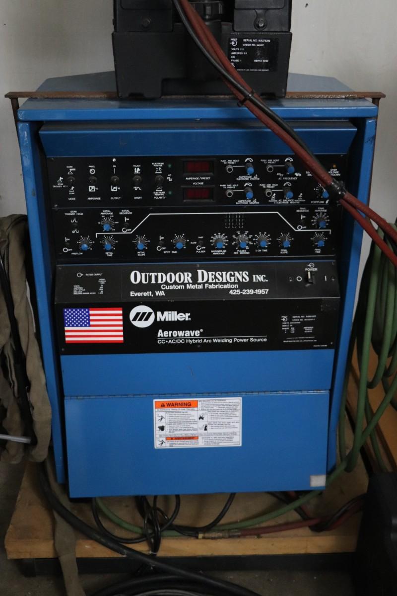 Miller Aerowave 300 AC/DC Hybrid Arc Welding Power Source with Miller Coolmate 3 coolant system. Includes all attached cables. Not tested, but believed to be in working condition.