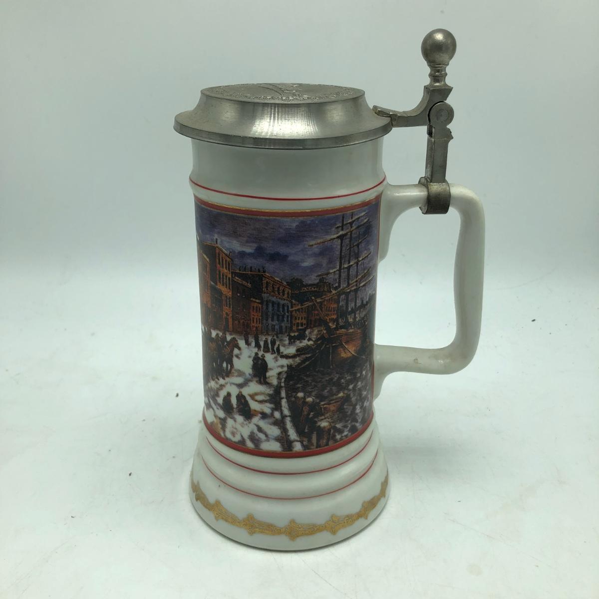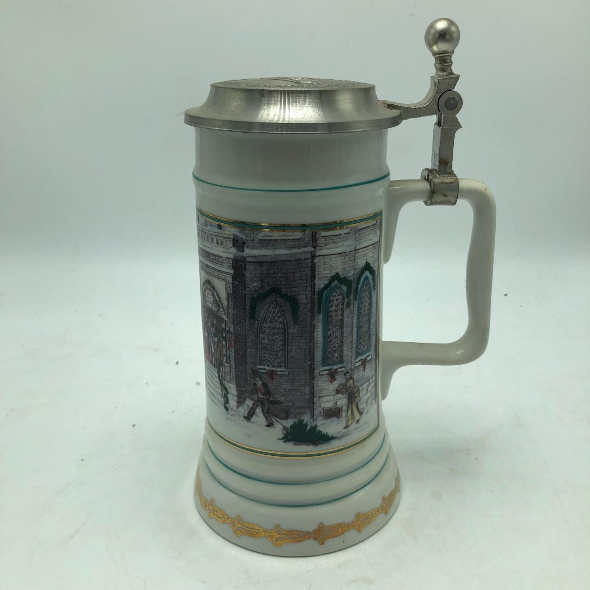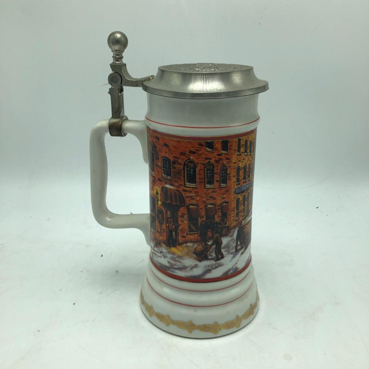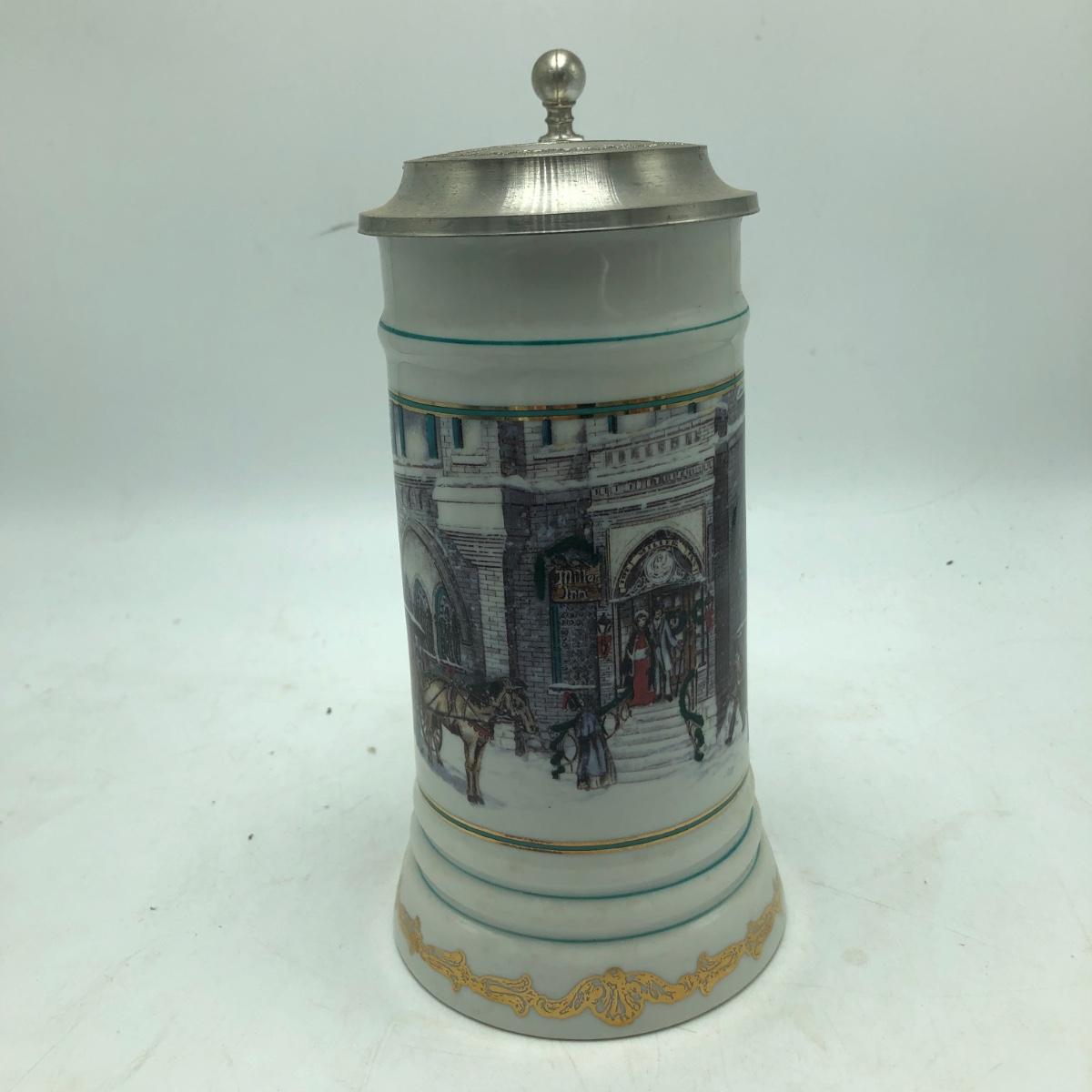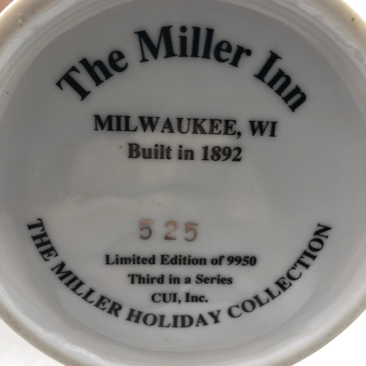 Lot includes two Miller Holiday Collection steins and a Miller Holiday tankard. Steins measure 4” x 5” x 8.5”.