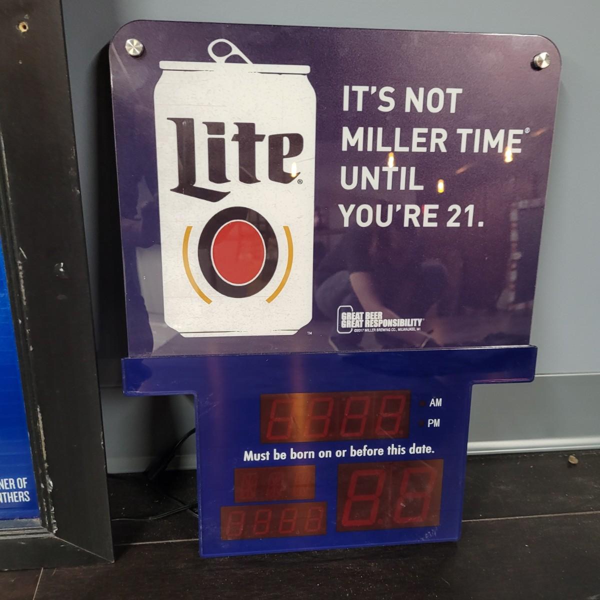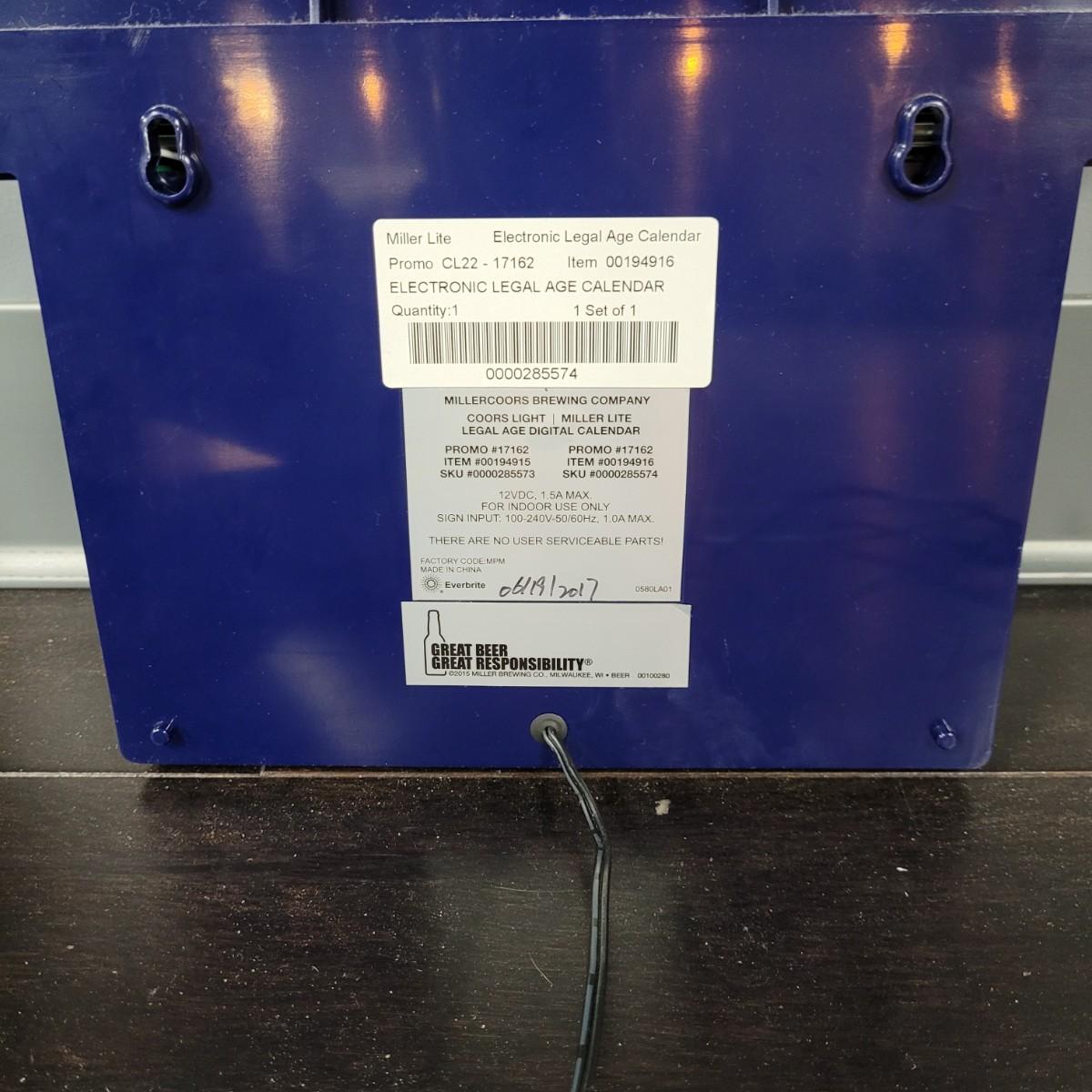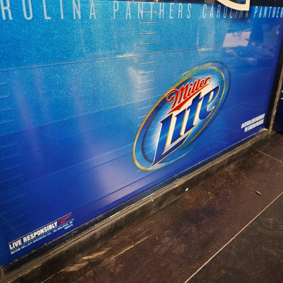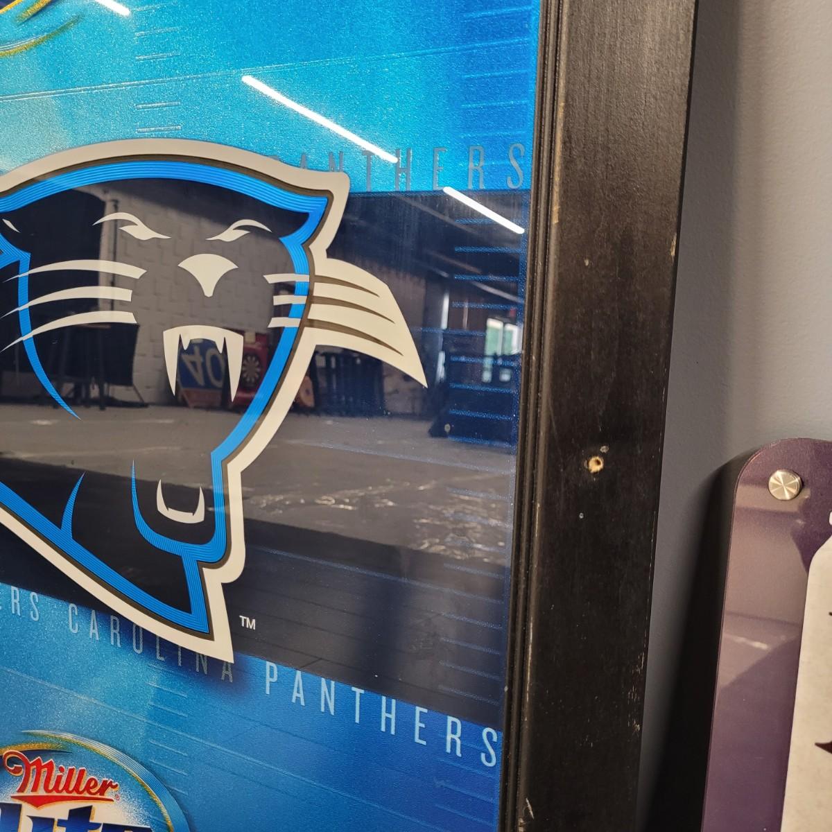 Miller Lite framed Carolina Panthers print. Normal wear and tear throughout frame (see pictures). Hanging wire attached. Measures approximately 28" x34". Digital legal age calendar is missing cord, can not confirm if it works. Measures approximately 14" x18.5". Shipping available. Shipping Art can be costly please call UPS store at 828-252-6930 for quote.