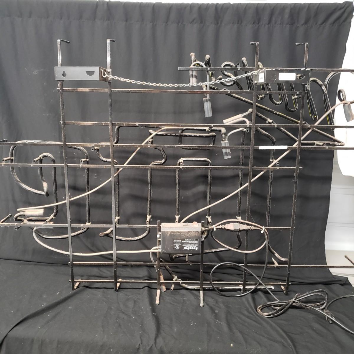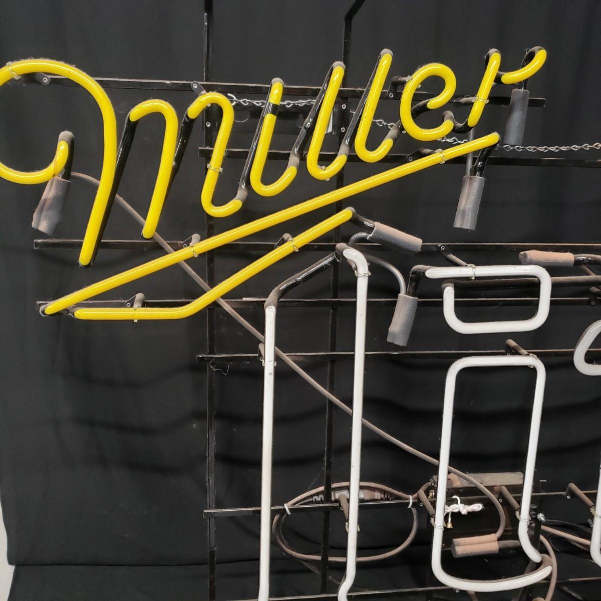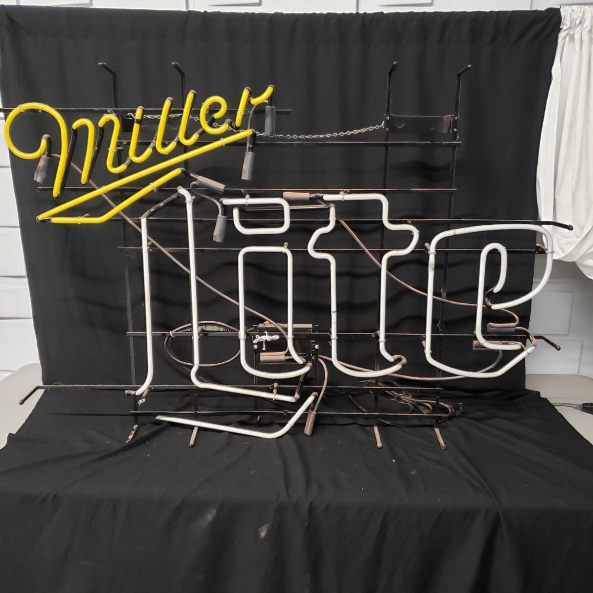 This Miller Lite sign measures 47"x4"x34". The bottom of the "L" light is broken. Loght was testedand does not work. Shipping available. Shipping Art can be costly please call UPS store at 828-252-6930 for quote.