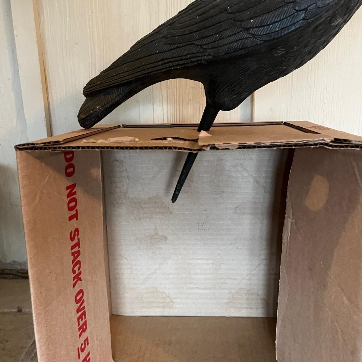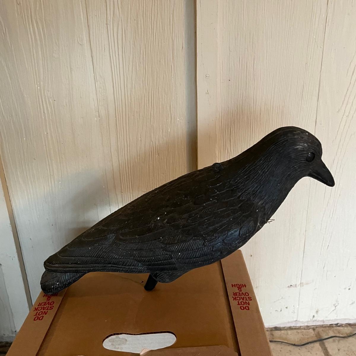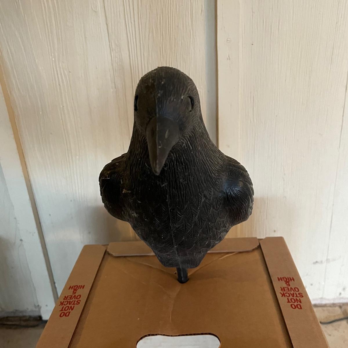 Lot includes over forty Miller manufacturing plastic duck decoys with weights and three plastic crows. Ducks measure 7” x 15” x 7.5”.