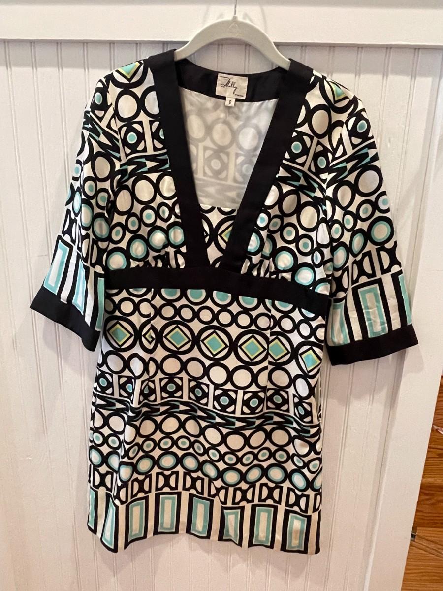 MILLY: BLUE/BLACK/YELLOW GEOMETRIC PRINT DRESS (WOMEN'S) SIZE 6
