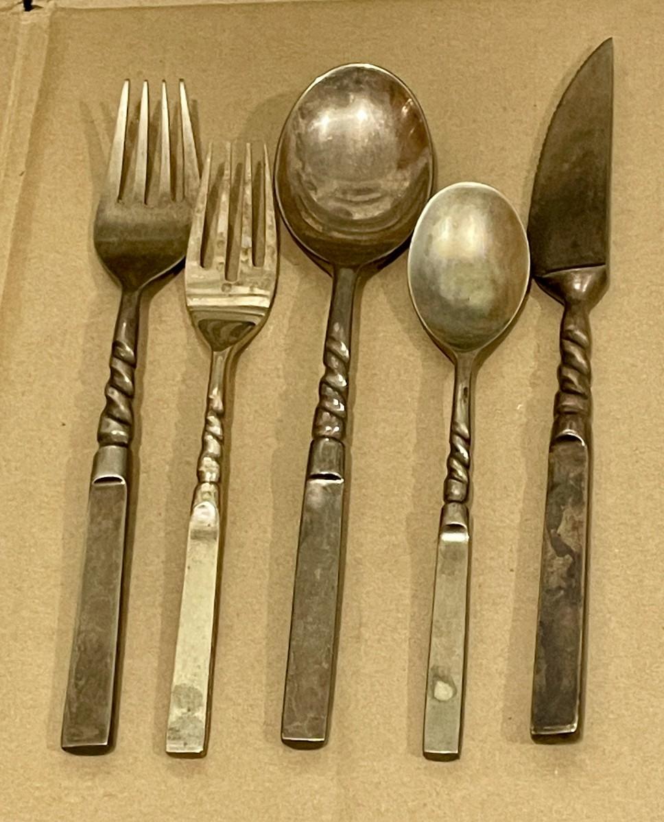 Includes 7 dinner knives, 8 dinner forks, 8 salad forks, 8 soup spoons & 8 teaspoons.