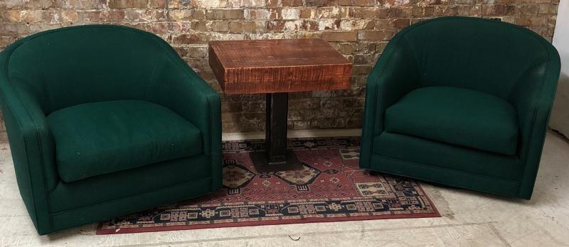 Nice MCM Milo Baugman swivel tub chairs, Possibly Thayer-Coggin, Dark green fabric is in good over all condition most likely recovered. Both are in good working order.