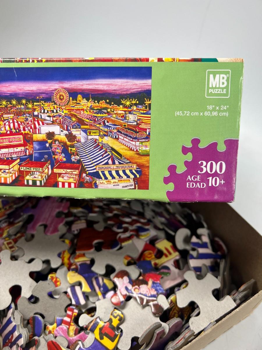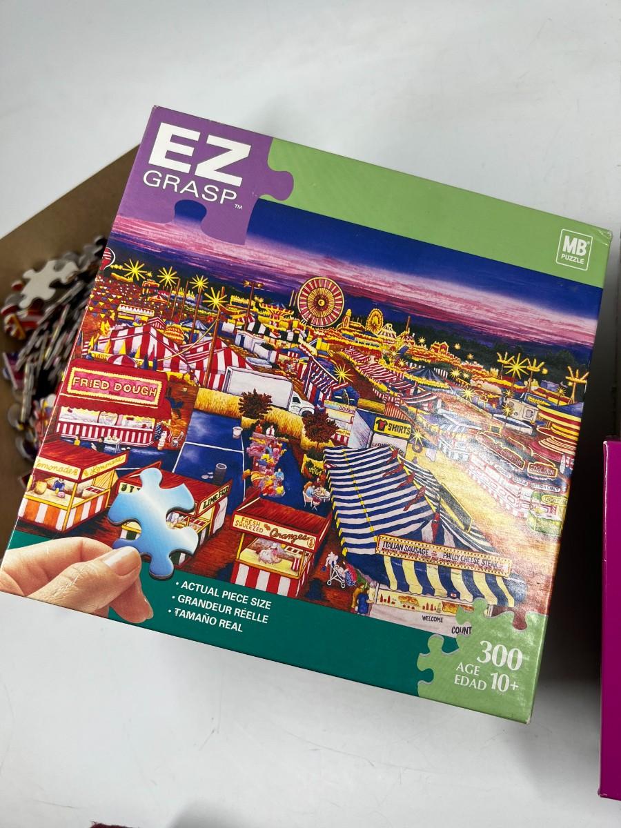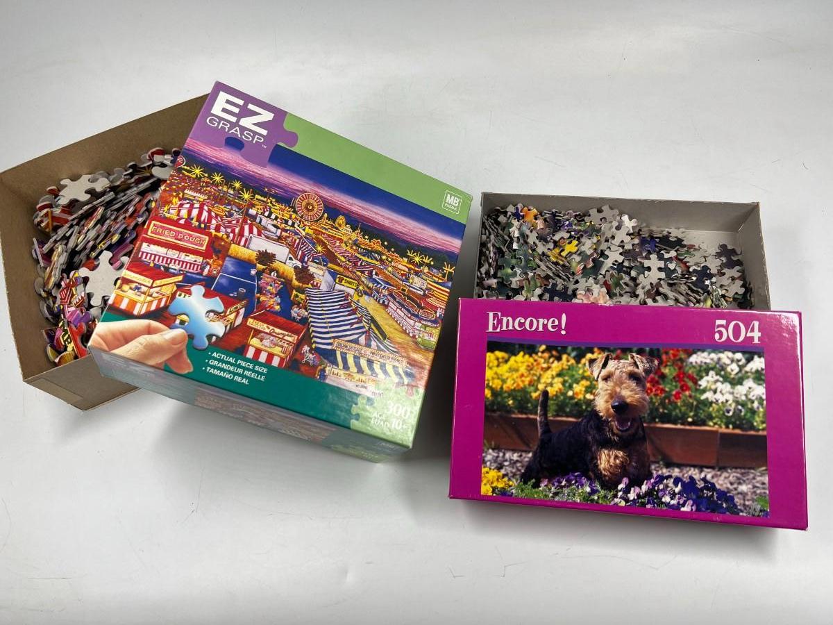 Milton Bradley EZ Grasp Nighttime Carnival Scene & Encore Welsh Terrier Dog Jigsaw Puzzles