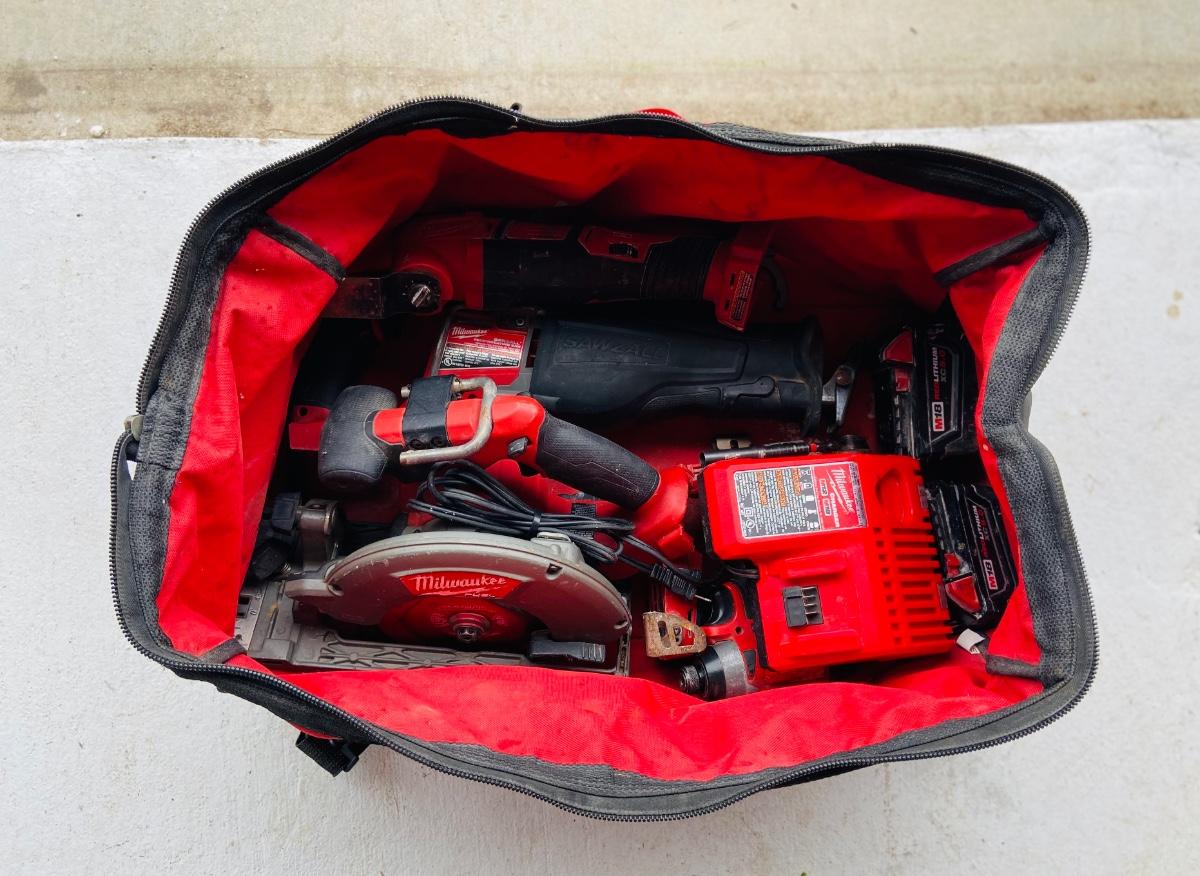 MILWAUKEE CORDLESS POWER TOOL SET WITH BAG LOT OF 8