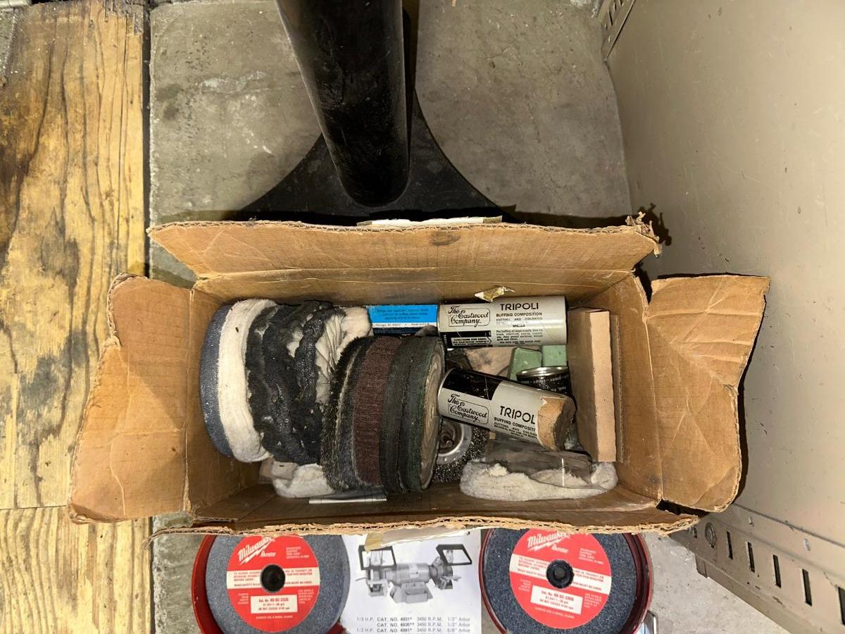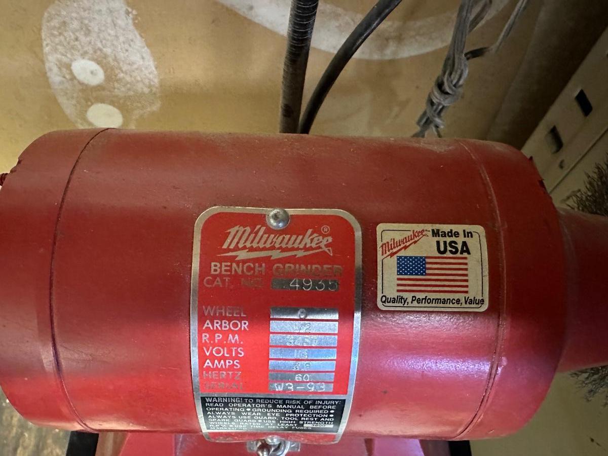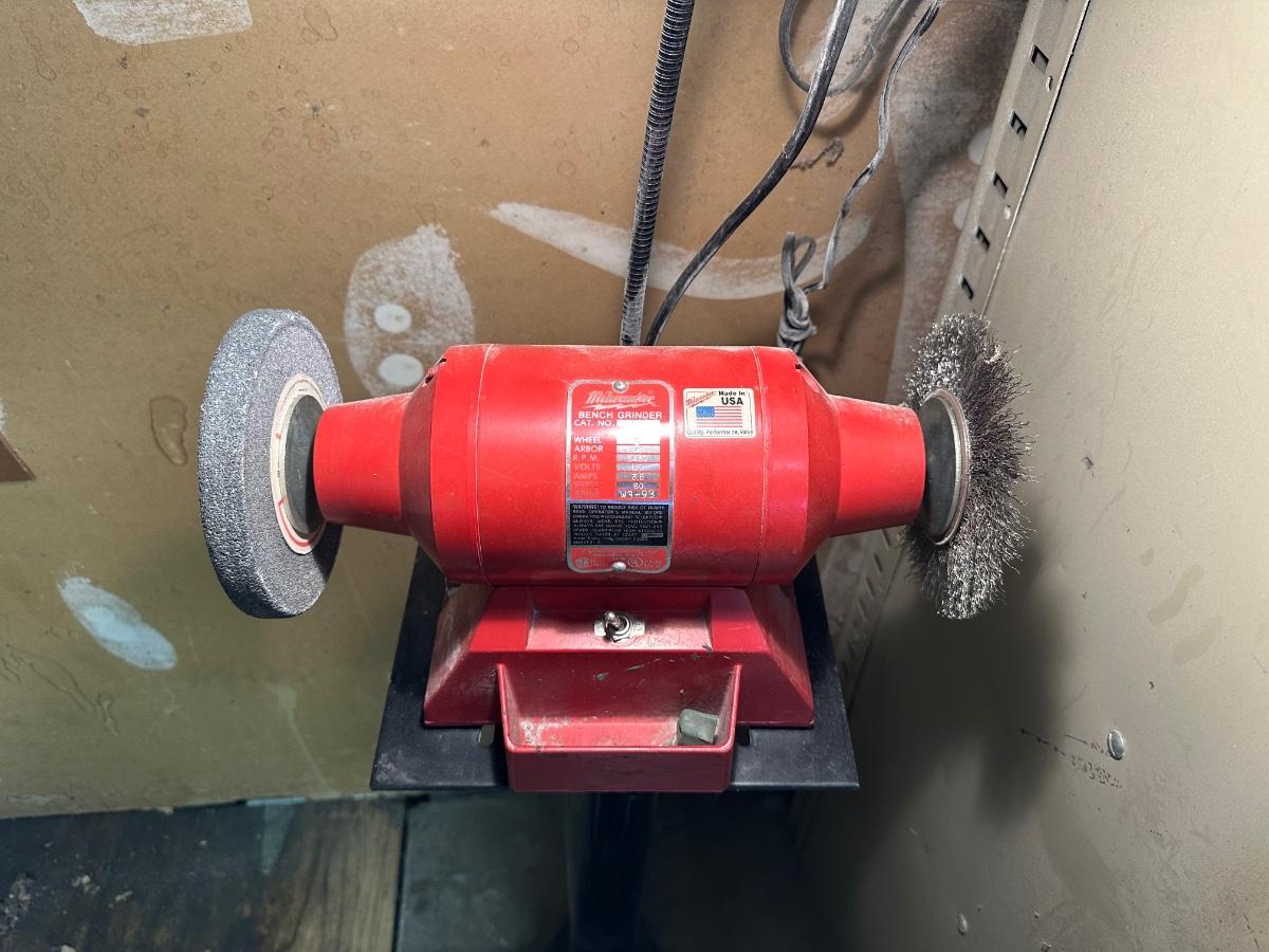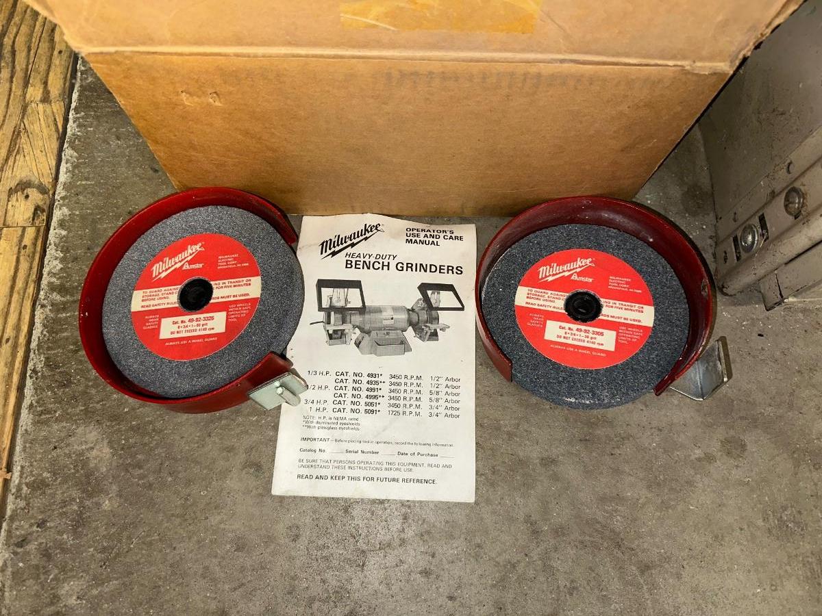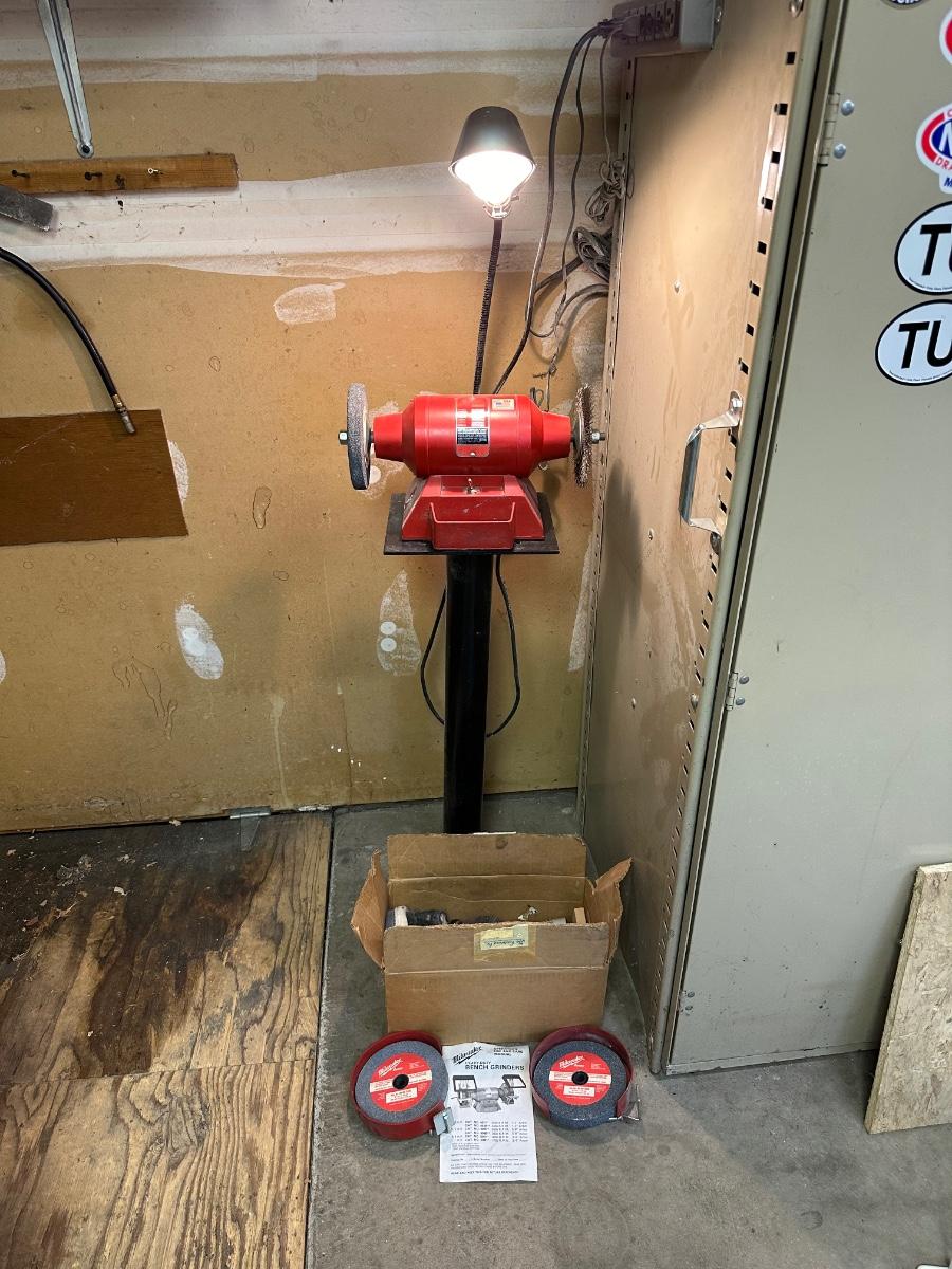 MILWAUKEE FREESTANDING BENCH GRINDER WITH EXTRA GRINDERS