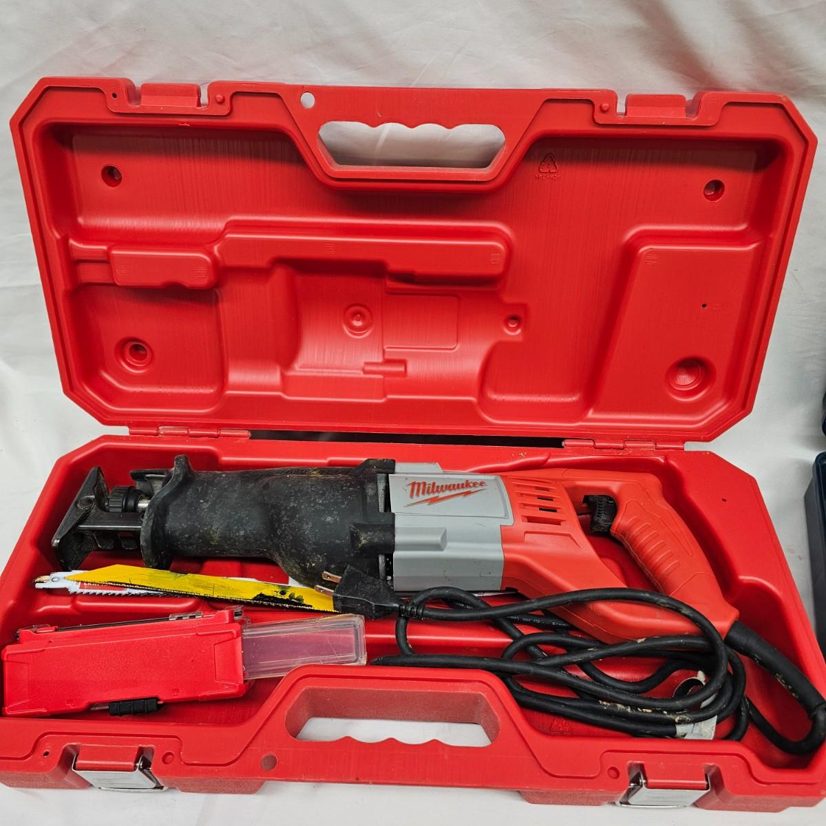 Two heavy duty tools from two major producers. Milwaukee Sawzall reciprocating saw comes with extra blades (used) a manual and hardshell storage case. Bosch Bulldog hammer drill has side support handle, depth gauge and one masonry drill. Comes in hard case. Both items powered on when plugged in. See photos for details. Shipping available.