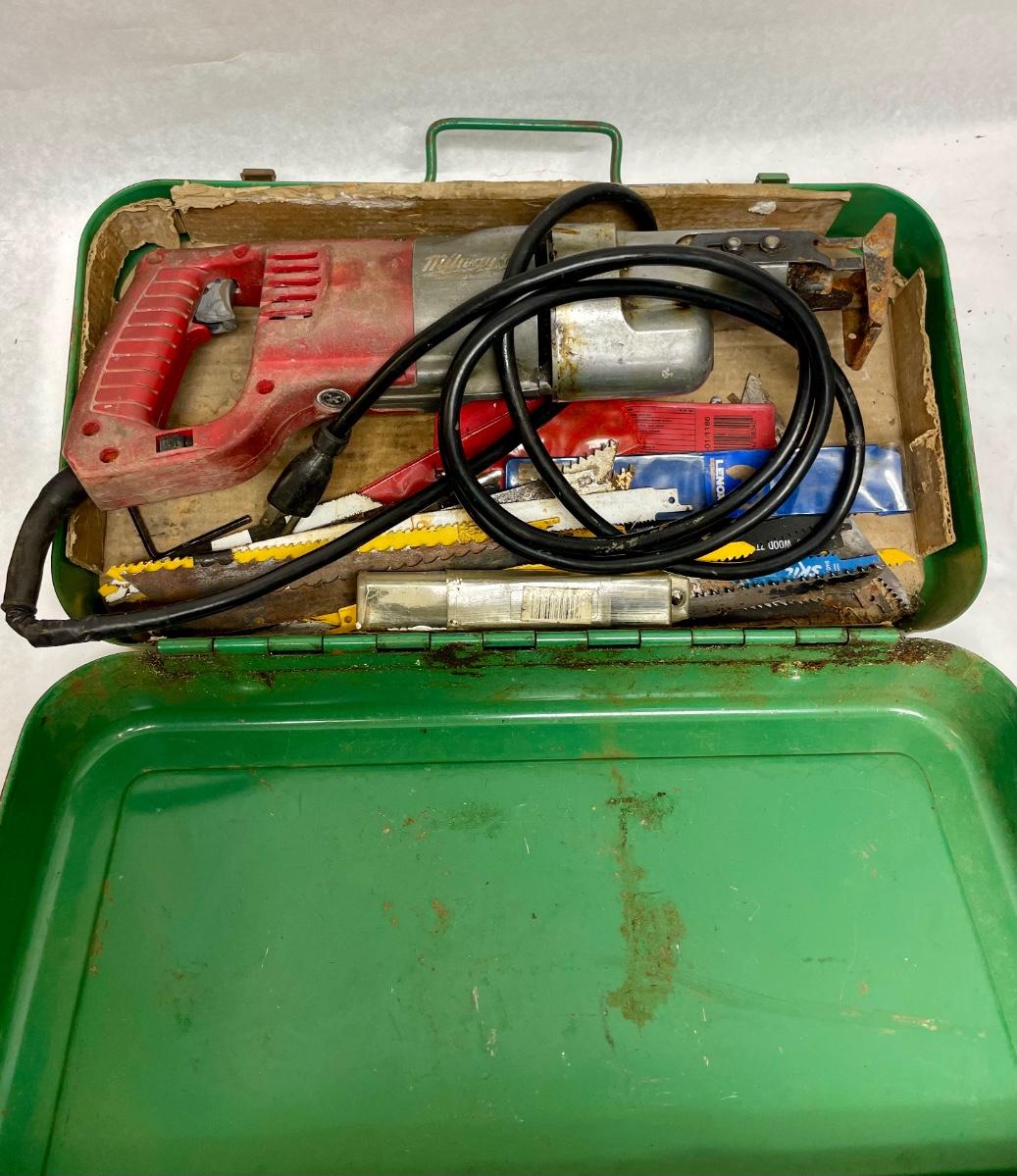 Kit includes saw model 33333, lots of extra cutting blades. In a Hitachi green metal case. Tested, runs strong.