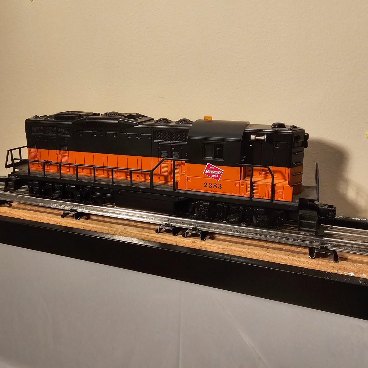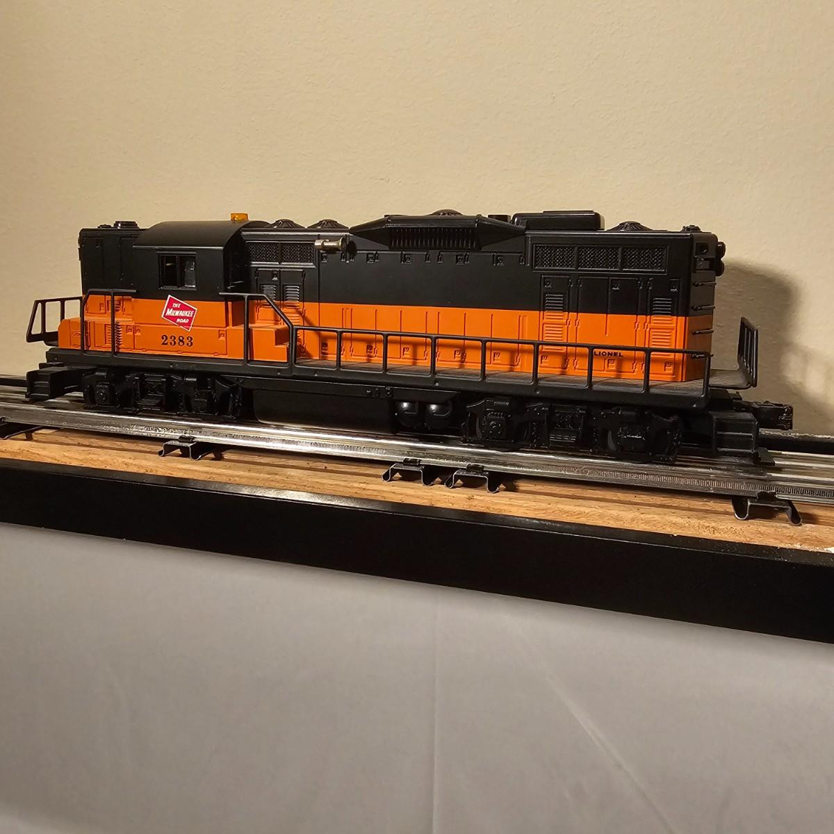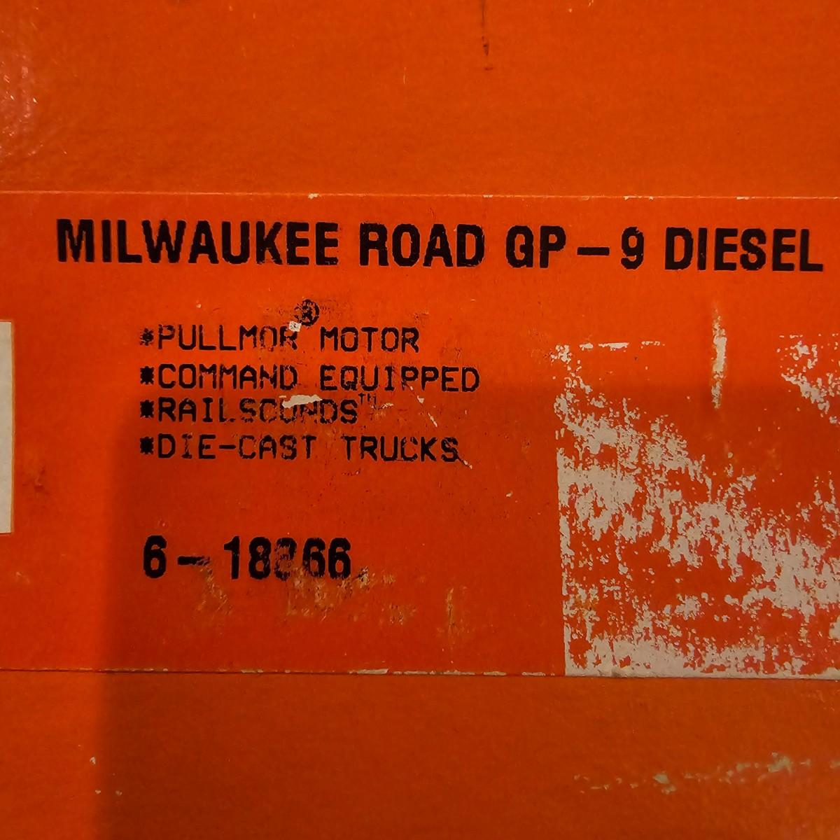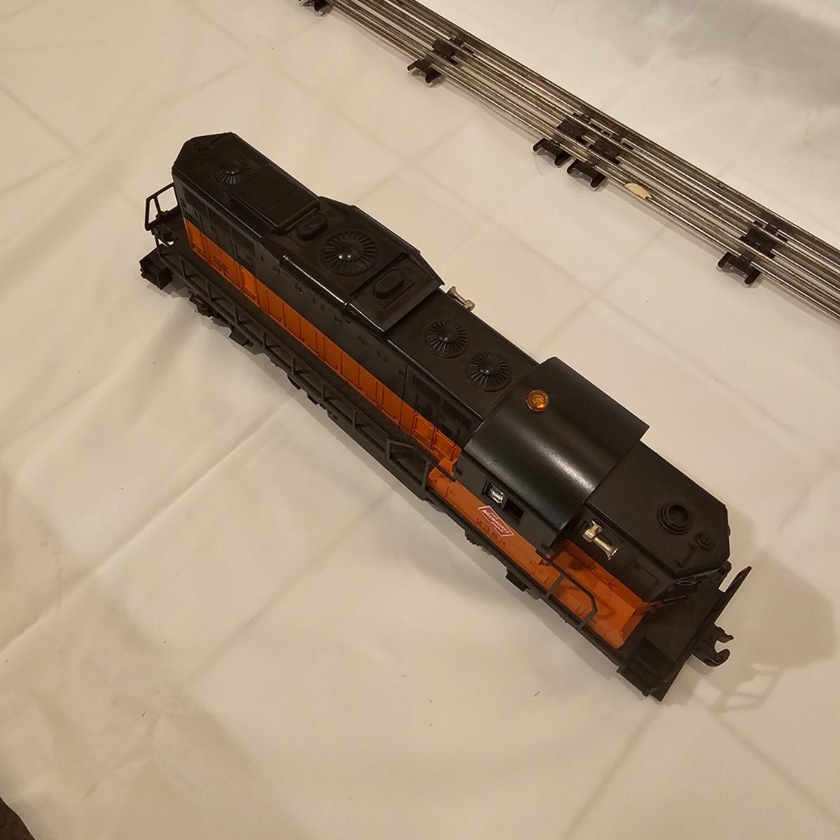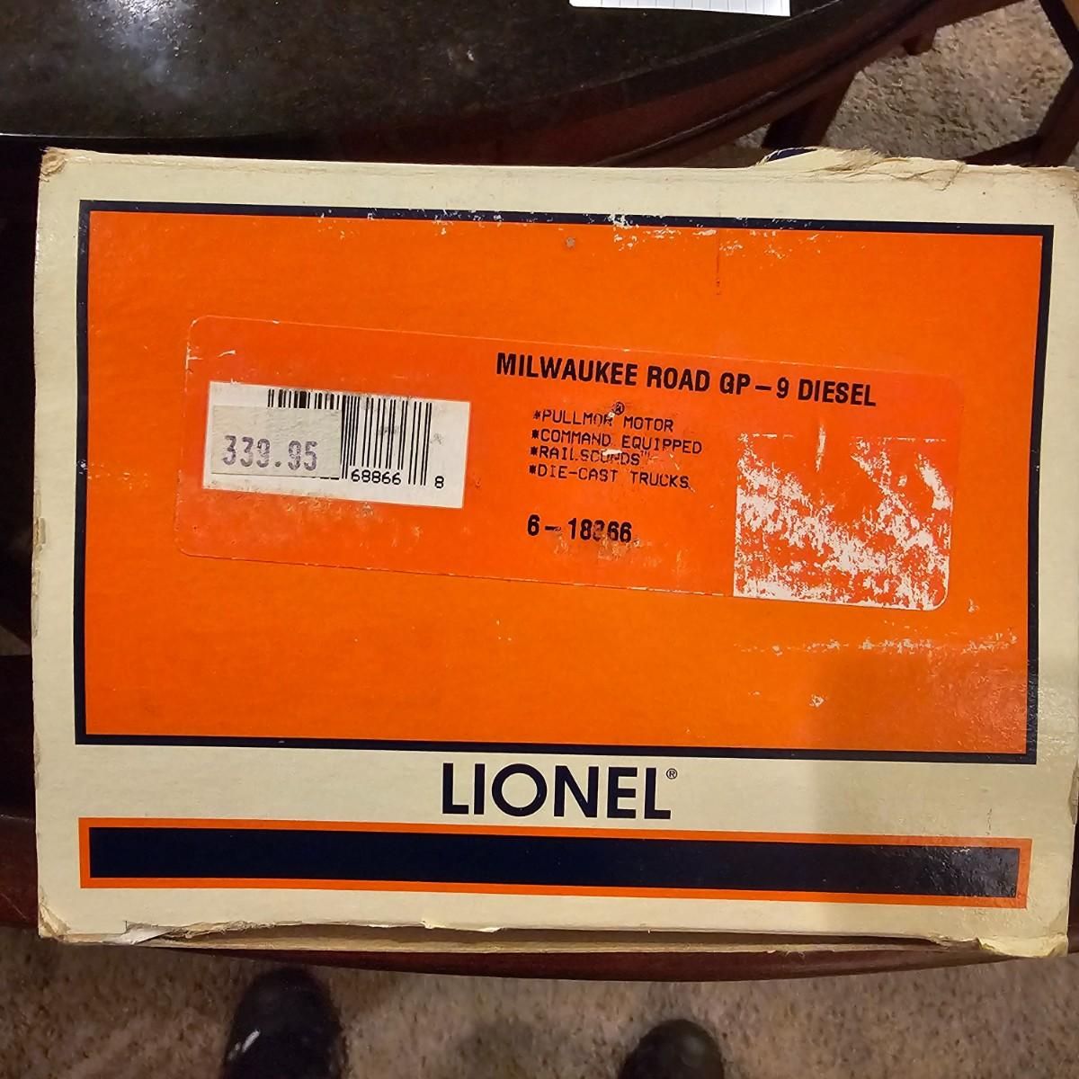 Classic orange and black on this Milwaukee Road GP-9 4-axle diesel. Realistic details, railings and more. Engine measures 14" x 3" x 4"H, started and ran on layout. Has additional features listed on box end photo. In original Lionel box, box shows wear and tear on flaps and sides. See photos for details. Shipping available. Please note that any price tag seen on an item was not put there by Sterling Transitions and does not reflect the current value of the item. Tracks in photos are not included with this lot, but available elsewhere in this auction.