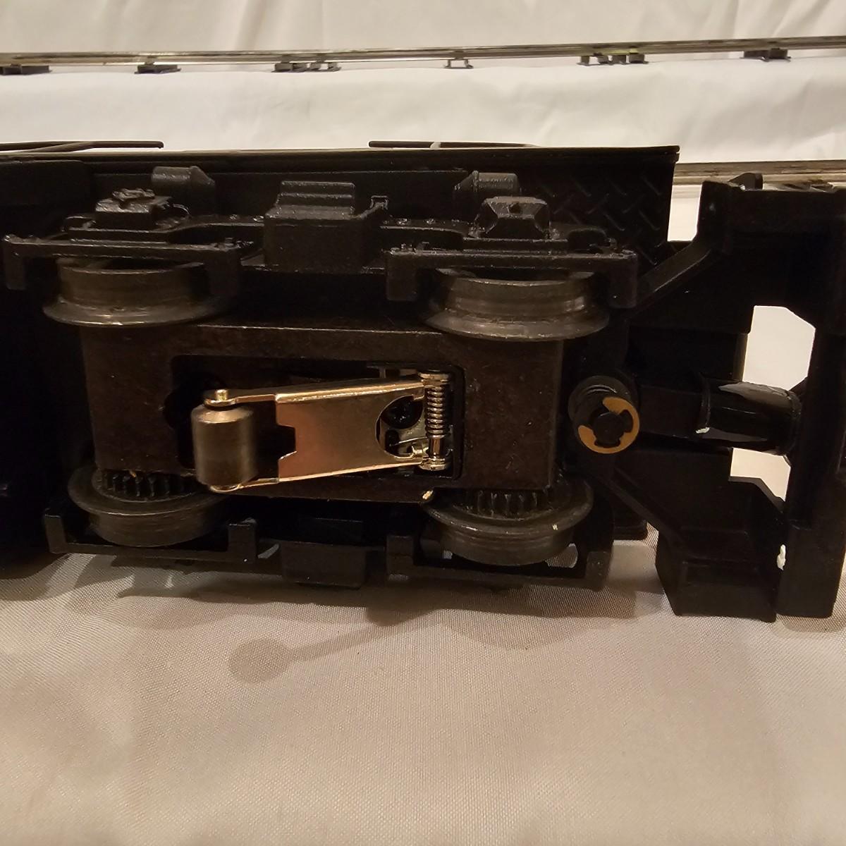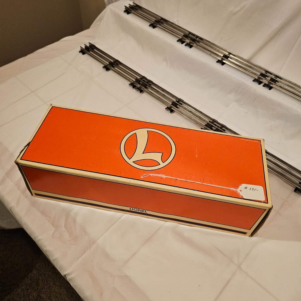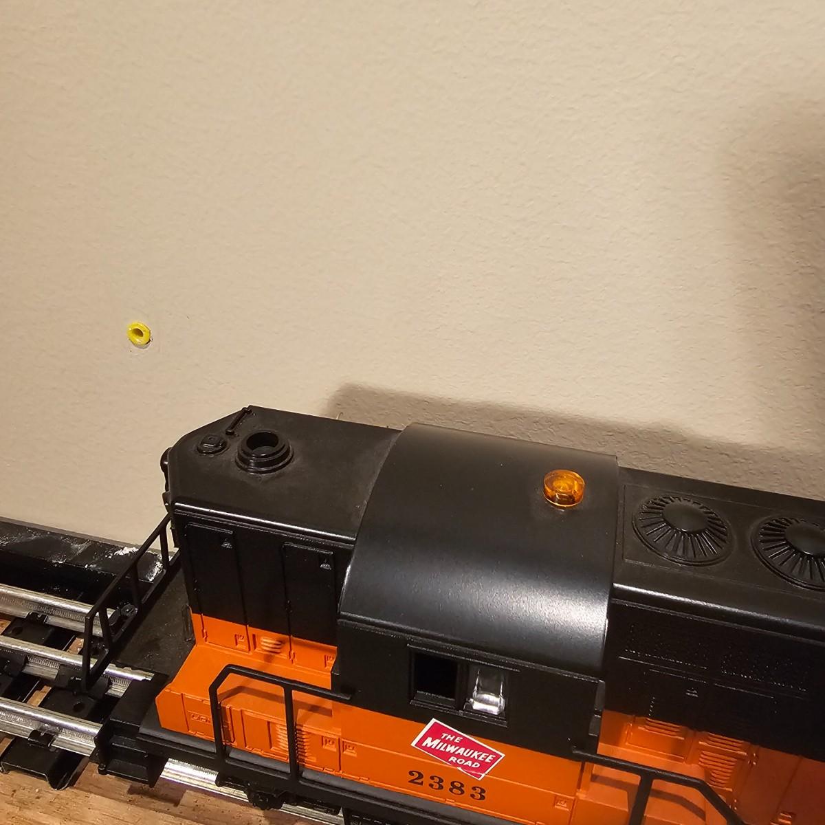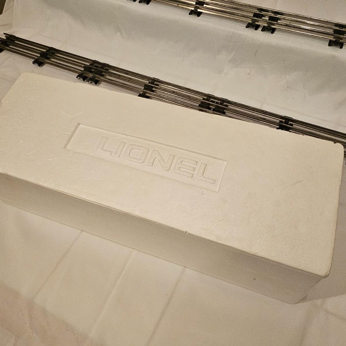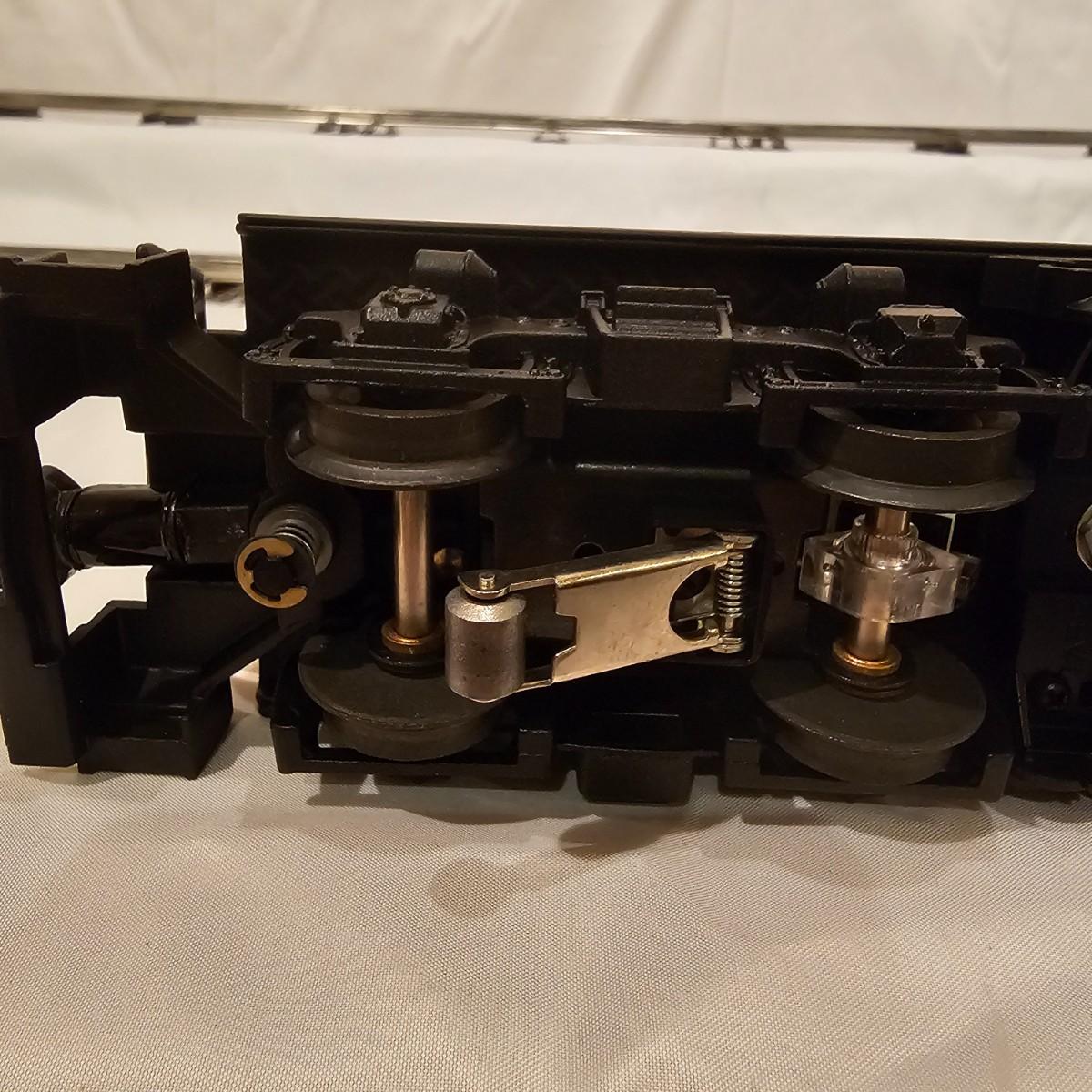 Classic orange and black on this Milwaukee Road GP-9 4-axle diesel. Realistic details, railings and more. Engine measures 14" x 3" x 4"H, started and ran on layout. Has additional features listed on box end photo. In original Lionel box, box shows wear and tear on flaps and sides. See photos for details. Shipping available. Please note that any price tag seen on an item was not put there by Sterling Transitions and does not reflect the current value of the item. Tracks in photos are not included with this lot, but available elsewhere in this auction.